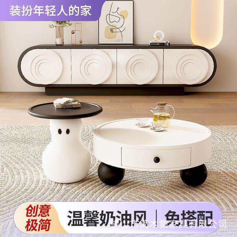 奶油风雪人茶几电视柜组合现代简约创意家用小户型客厅带抽屉 新款由