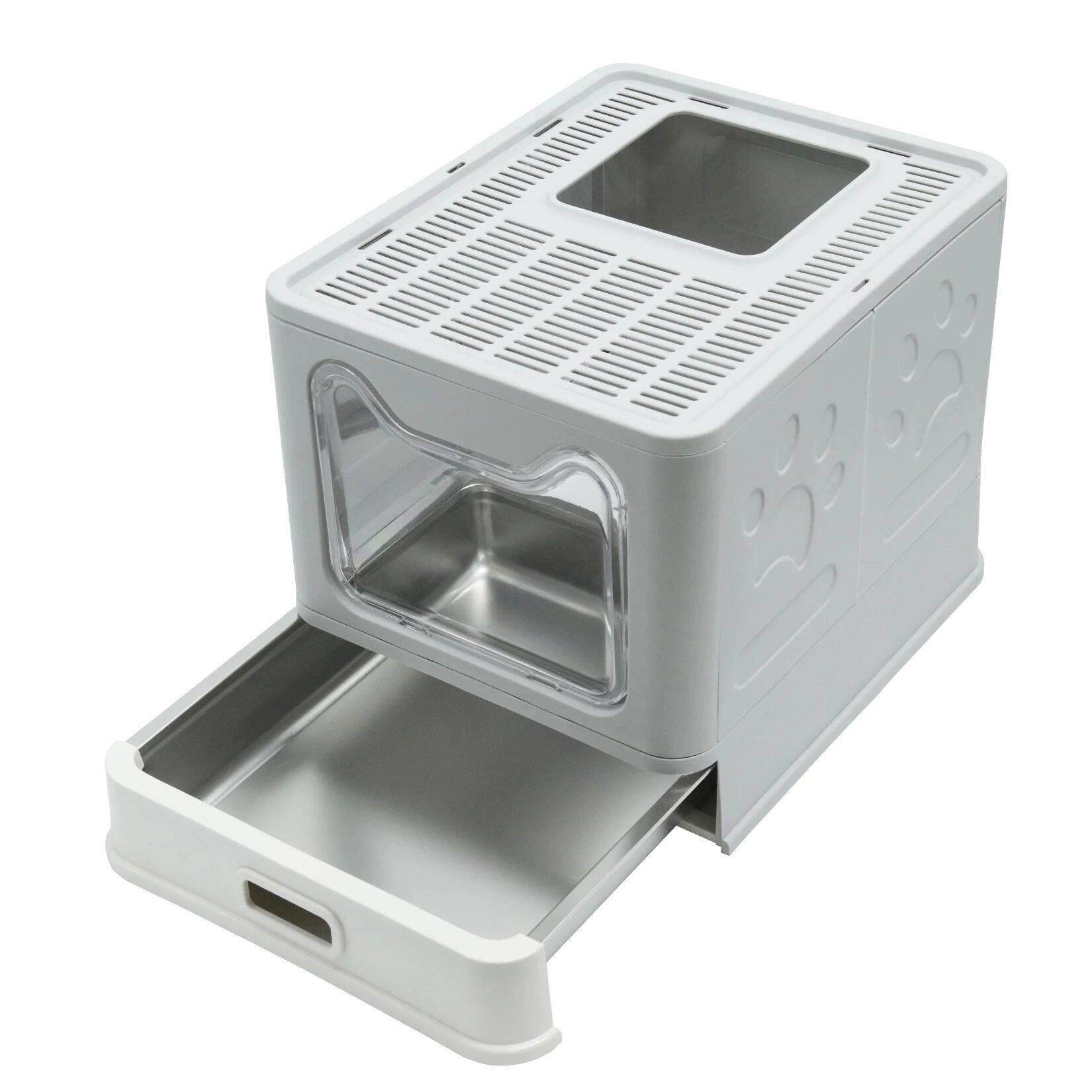 Bingopaw Box Front Entry Litter Lid Cat Steel Stainless with由
