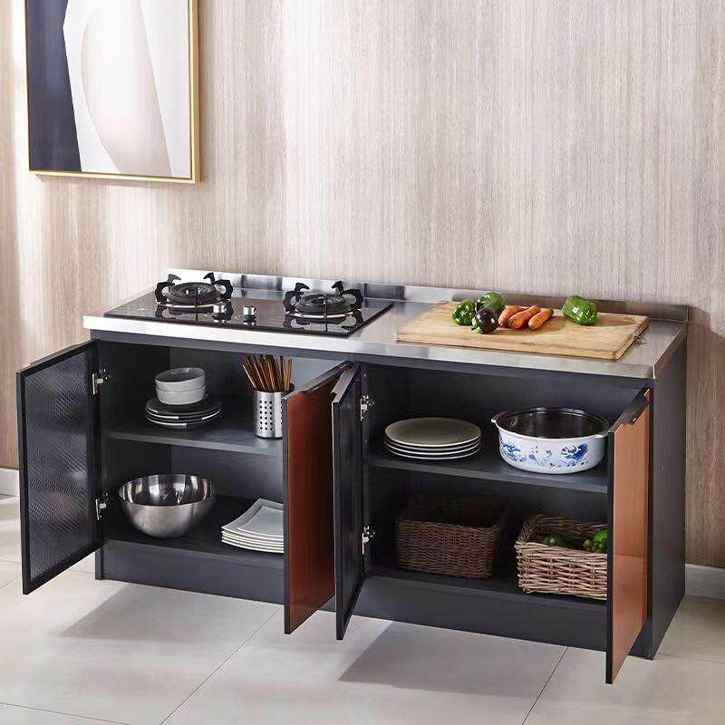 不锈房钢橱柜太空铝水槽灶台一体台碗租储物收纳柜家多种柜厨用厨
