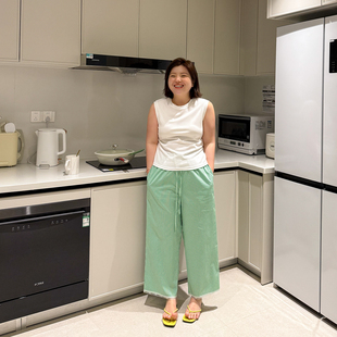 九分加大码 显瘦薄款 夏季 居家人棉绵绸睡裤 ins 宽松休闲格子家居裤