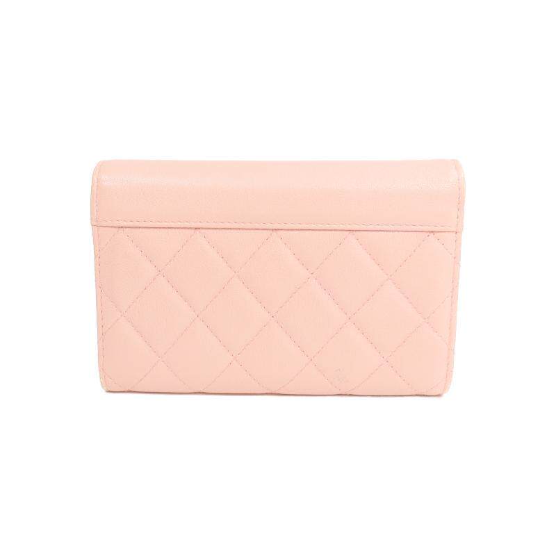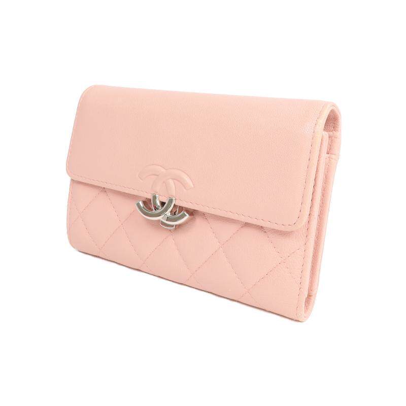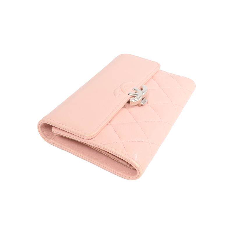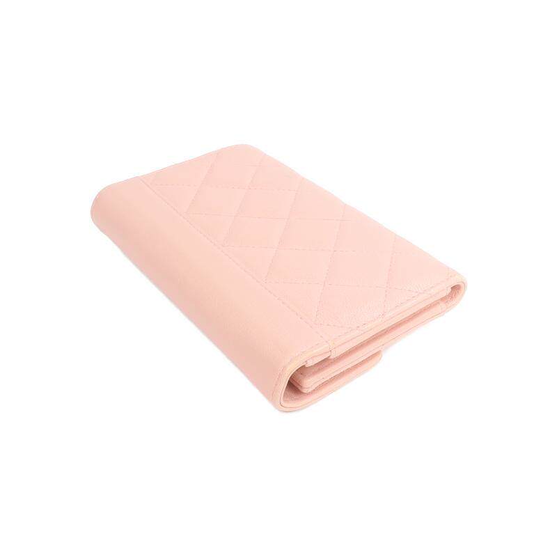 wallet三折钱包牛皮短钱包粉色 中古Chanel香奈儿女B级9新trifold