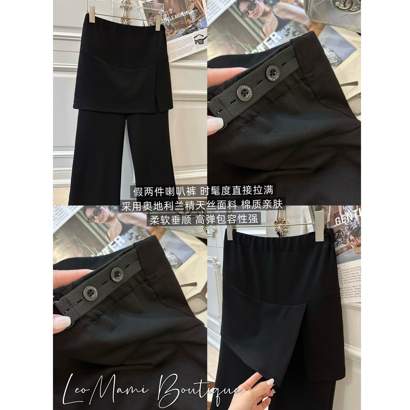 垂感修身 LeoMami孕妇裤 春夏款 假两件屁帘托腹微喇叭裤 显瘦休闲裤