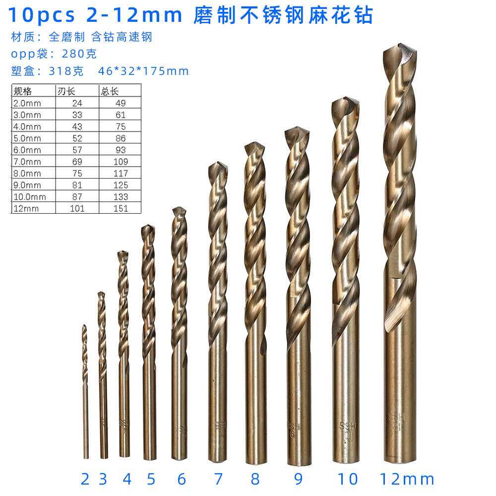 Mm5高YJC 212m手电钻锈不钢含钴打孔钻开孔 速钢麻花钻头10件套装
