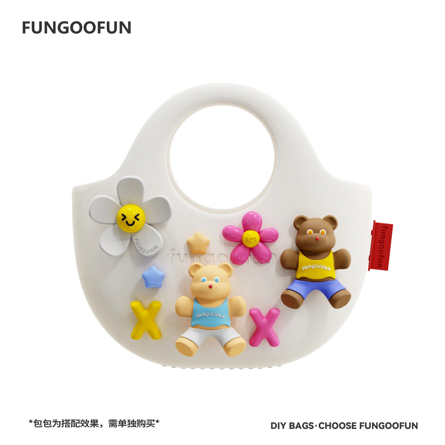 fungoofun 饰扣花 元 气小熊 梵高范原创包面配件DIY卡通趣味包包装