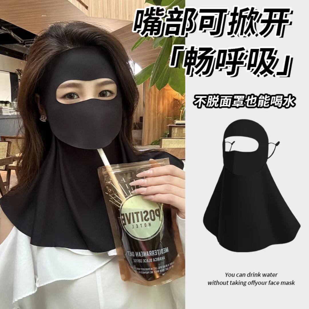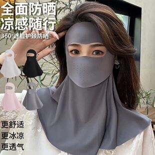 防晒面罩女士夏全脸防紫外线开车骑行护颈脸基尼冰丝口罩遮阳面纱