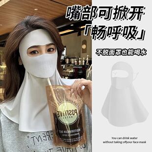 透气冰丝口罩防紫外线开车面纱护颈遮脖子骑行 全脸防晒面罩女夏季