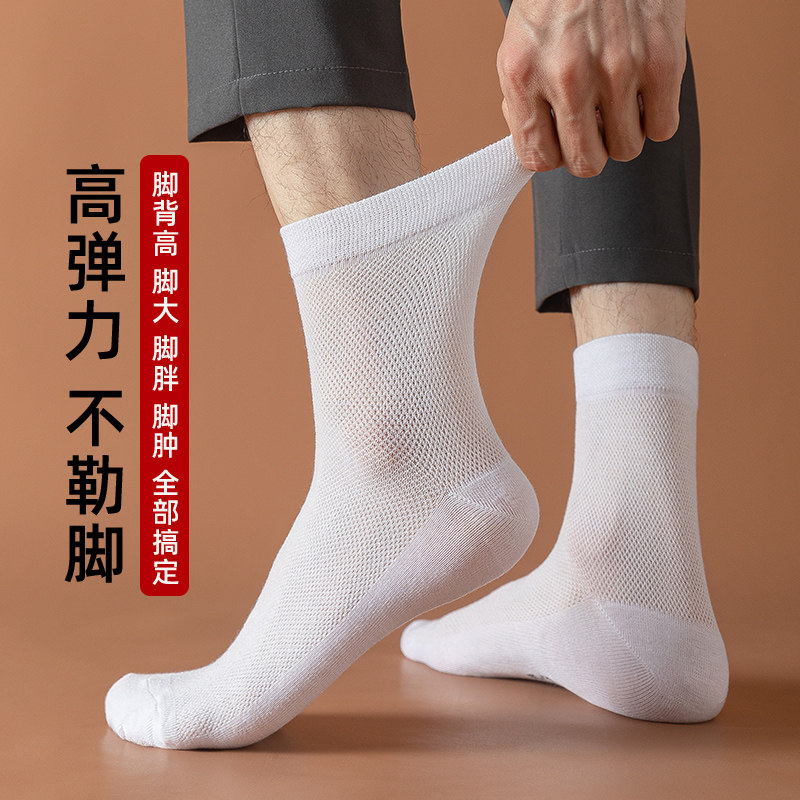 48夏薄款 中筒袜46纯棉防臭45网眼透气50加大号长袜 袜子男士 特大码