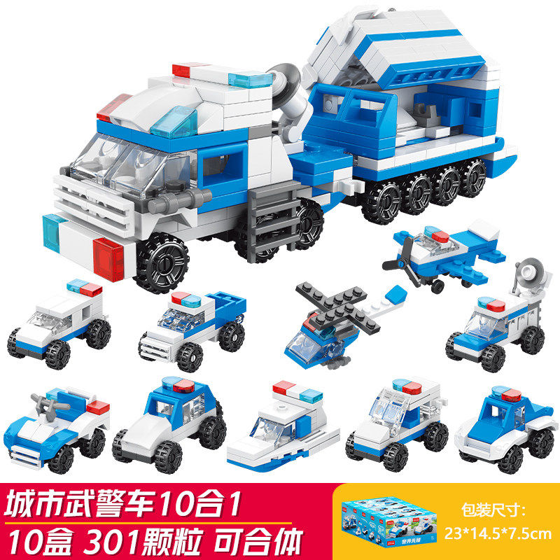警车模型玩具男孩重型工程车礼物拼图适用于乐高 积木儿童益智拼装