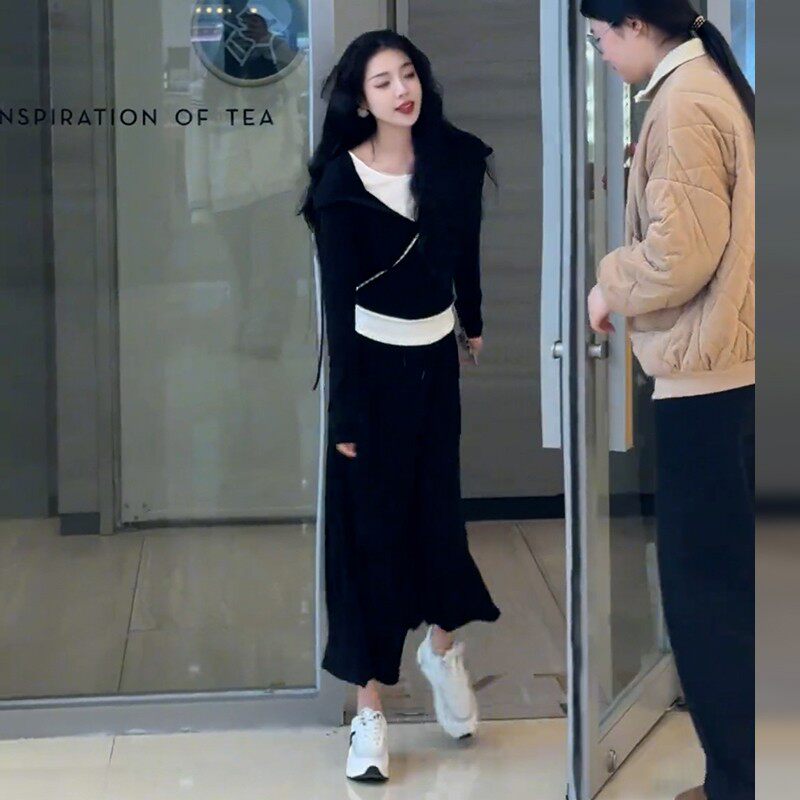 2025年新款 女款 子春装 长裙 春穿搭一整套休闲 厚棉运动套装 开 洋装