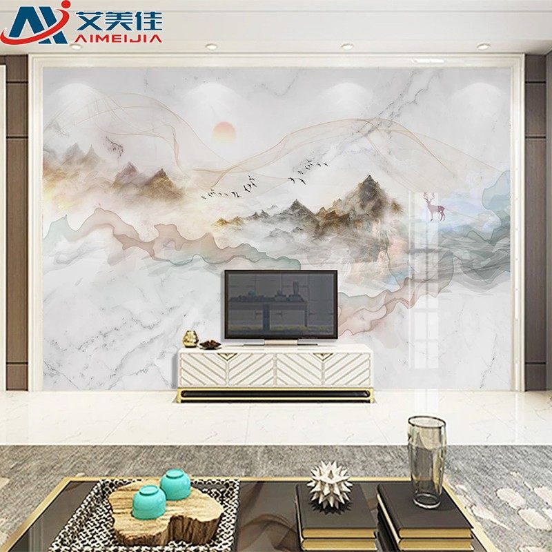 轻奢悬空客厅影视 热销速发微晶石电视背景墙瓷砖2020现代简约中式