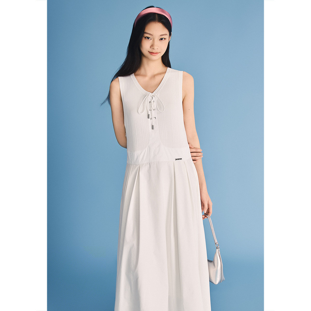 绣花拼接雪纺压褶宽松针织早春漂亮连衣裙 MOVEUP幻走2026春夏新品