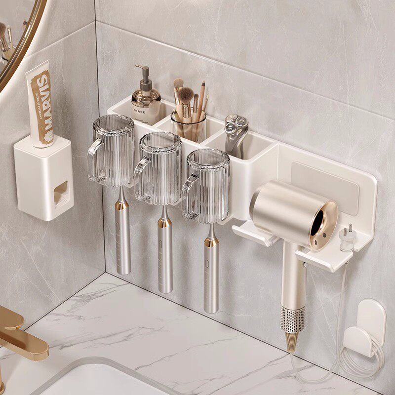漱口杯牙具架子白色 轻奢电动牙刷置物架吹风机支架化妆室壁挂式