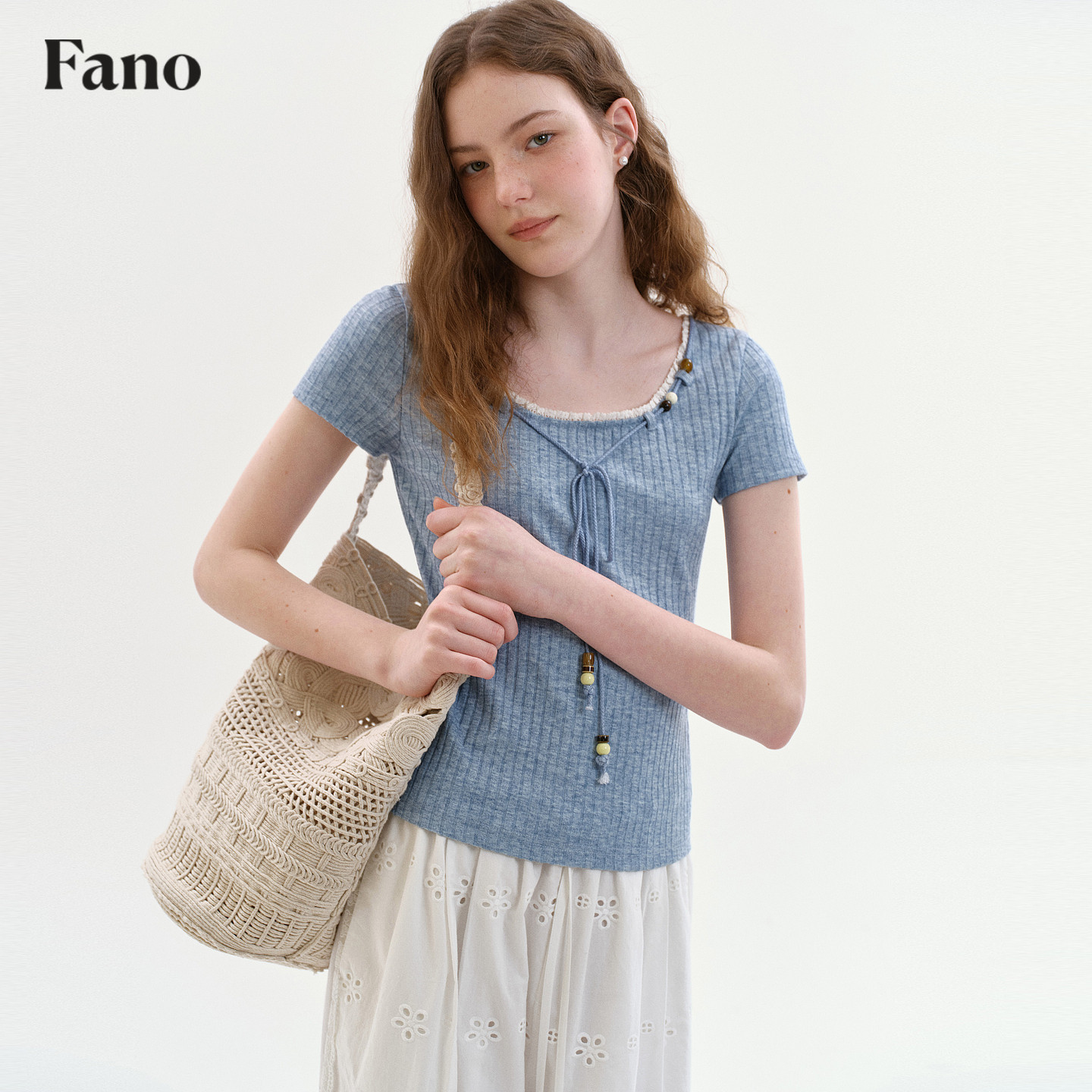 蕾丝花边抽绳短袖 范洛Fano 上衣 新款 T恤女2026春季 法式 少女感修身由