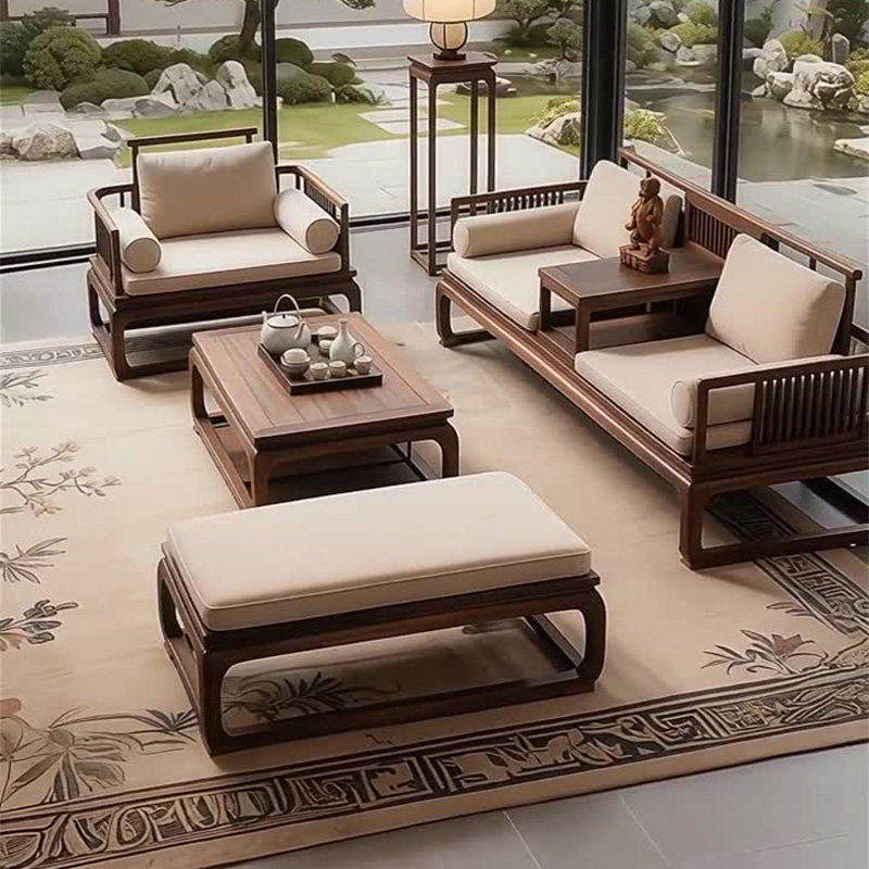 为您提供商品宋式 实木沙发组合客厅家具北美黑胡桃木色沙发茶几组合 美学新中式的详细介绍,