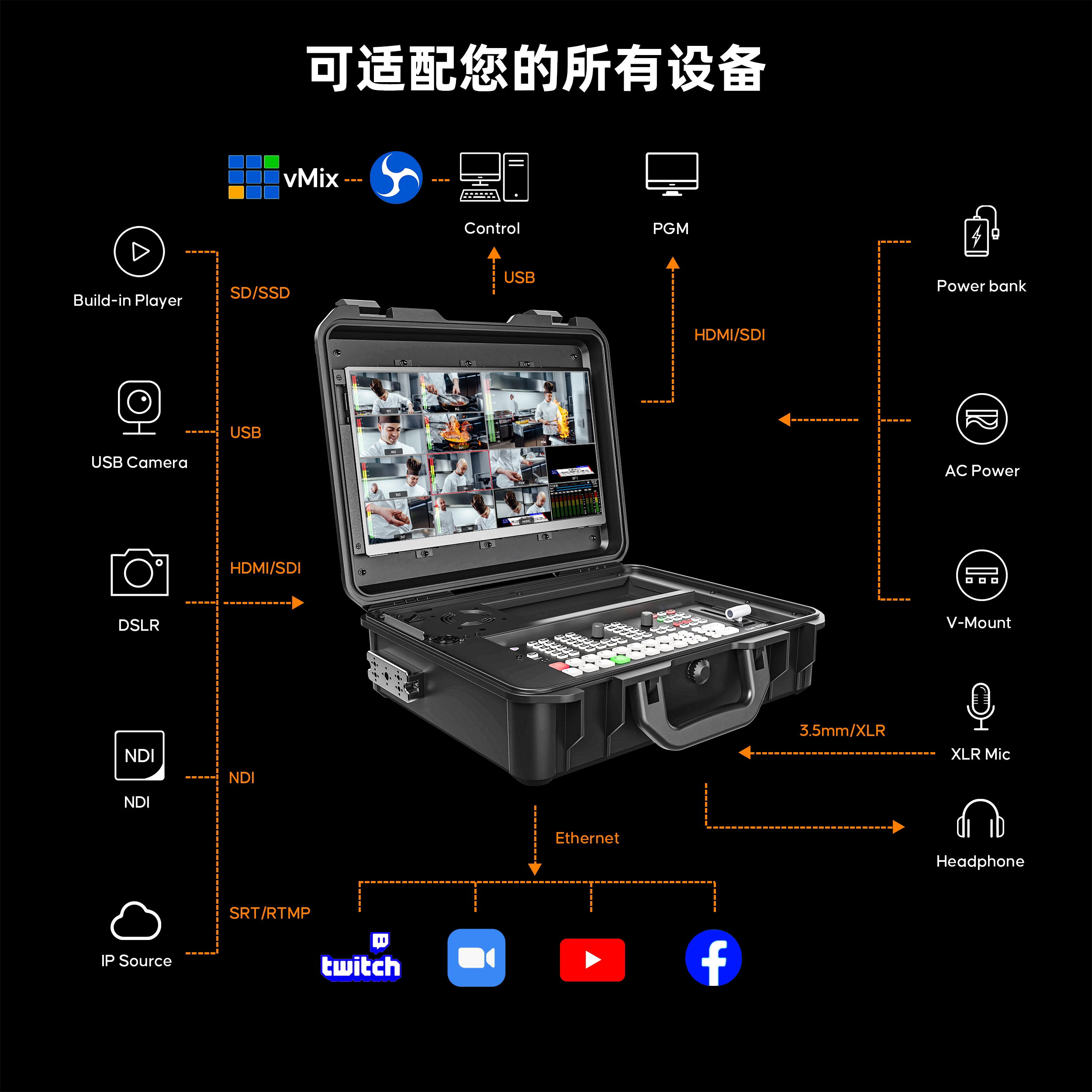 ISO一体便携导播切换台多机位8路直播推流录制画中画特效转场视频混音 Duet OSEE时代奥视GoStream由