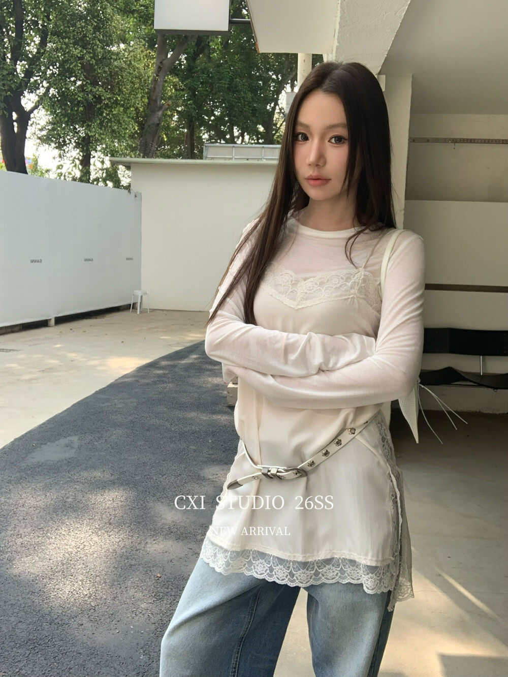 韩版 洋气辣妹百搭ins叠穿蕾丝拼接吊带背心女 2026春夏新款 CXI正版由
