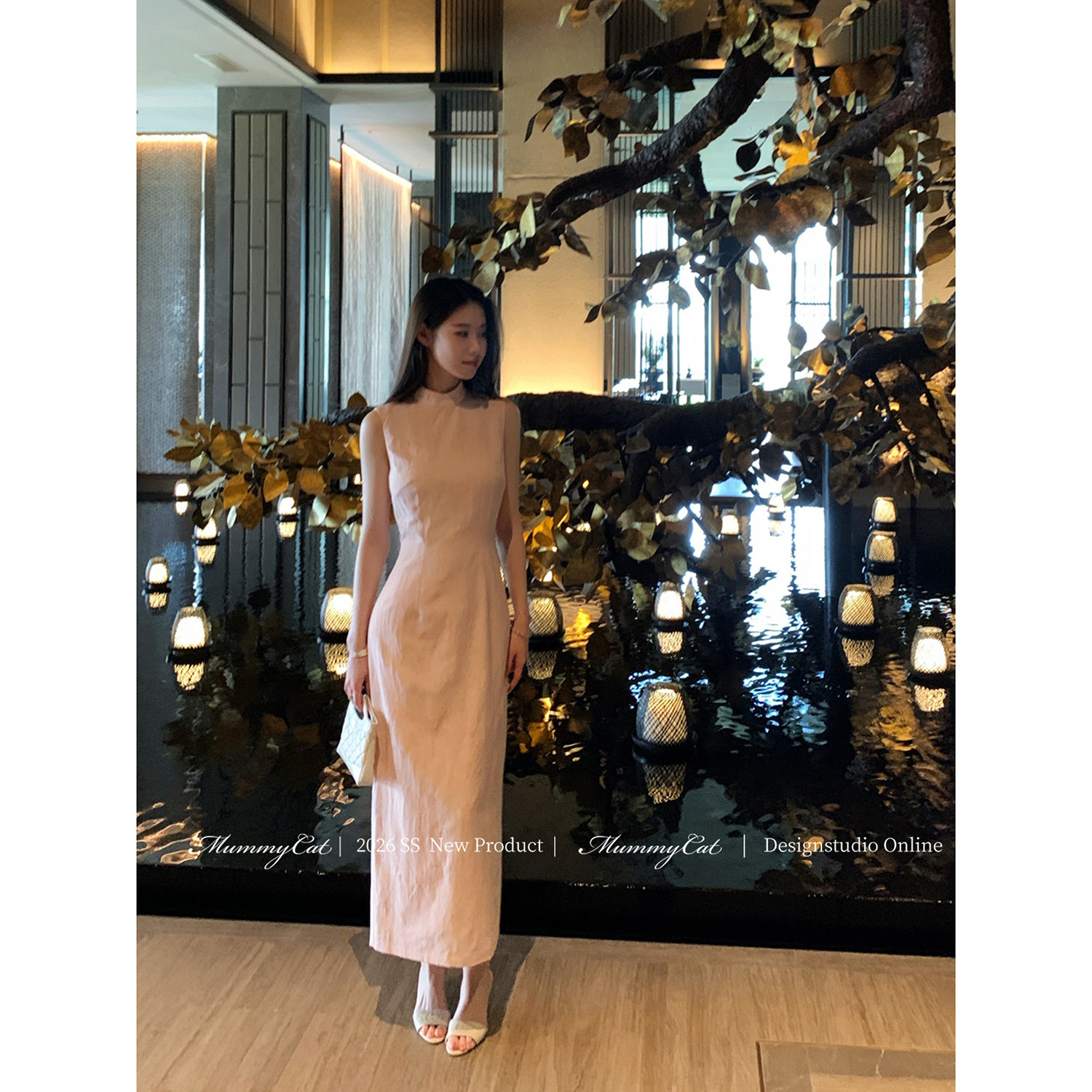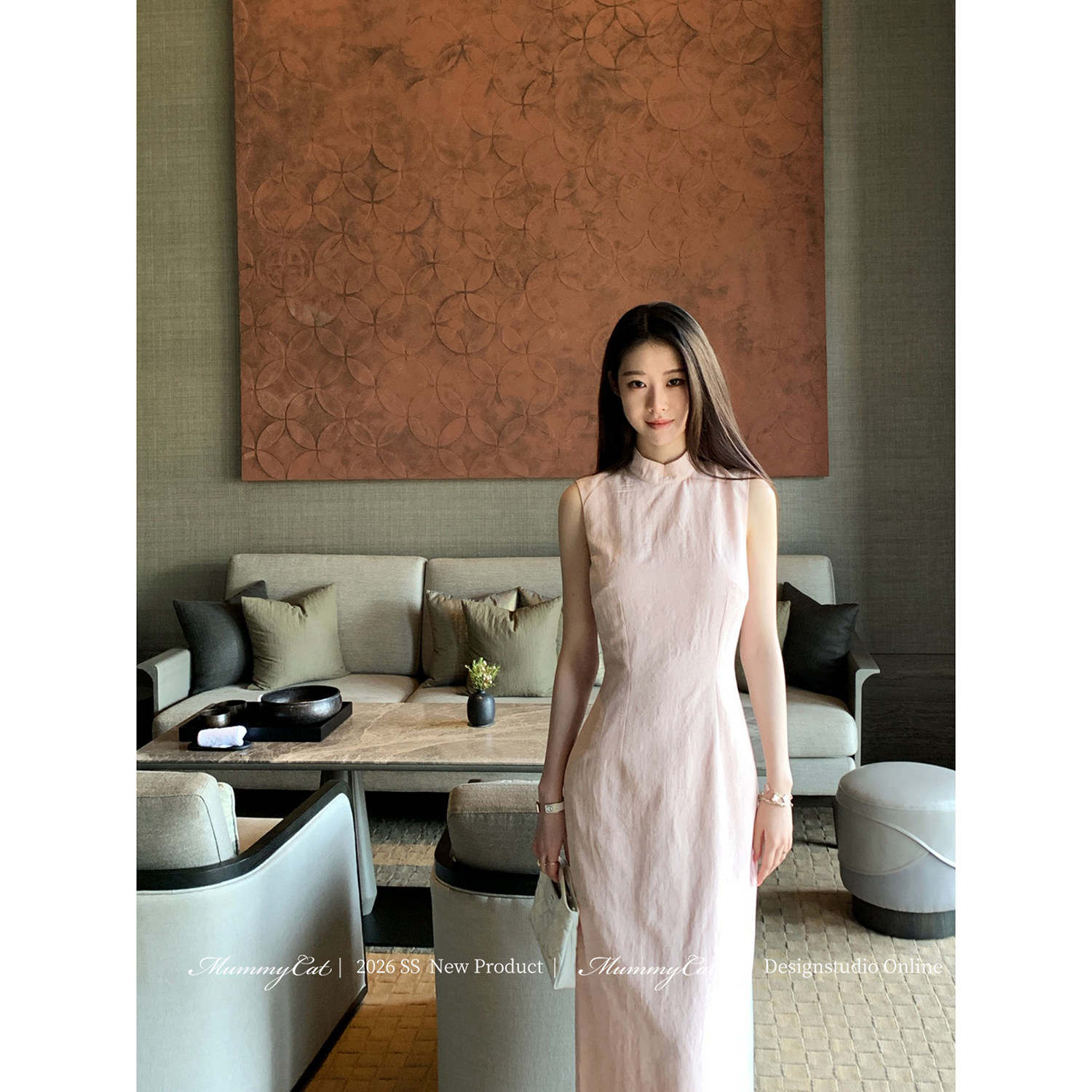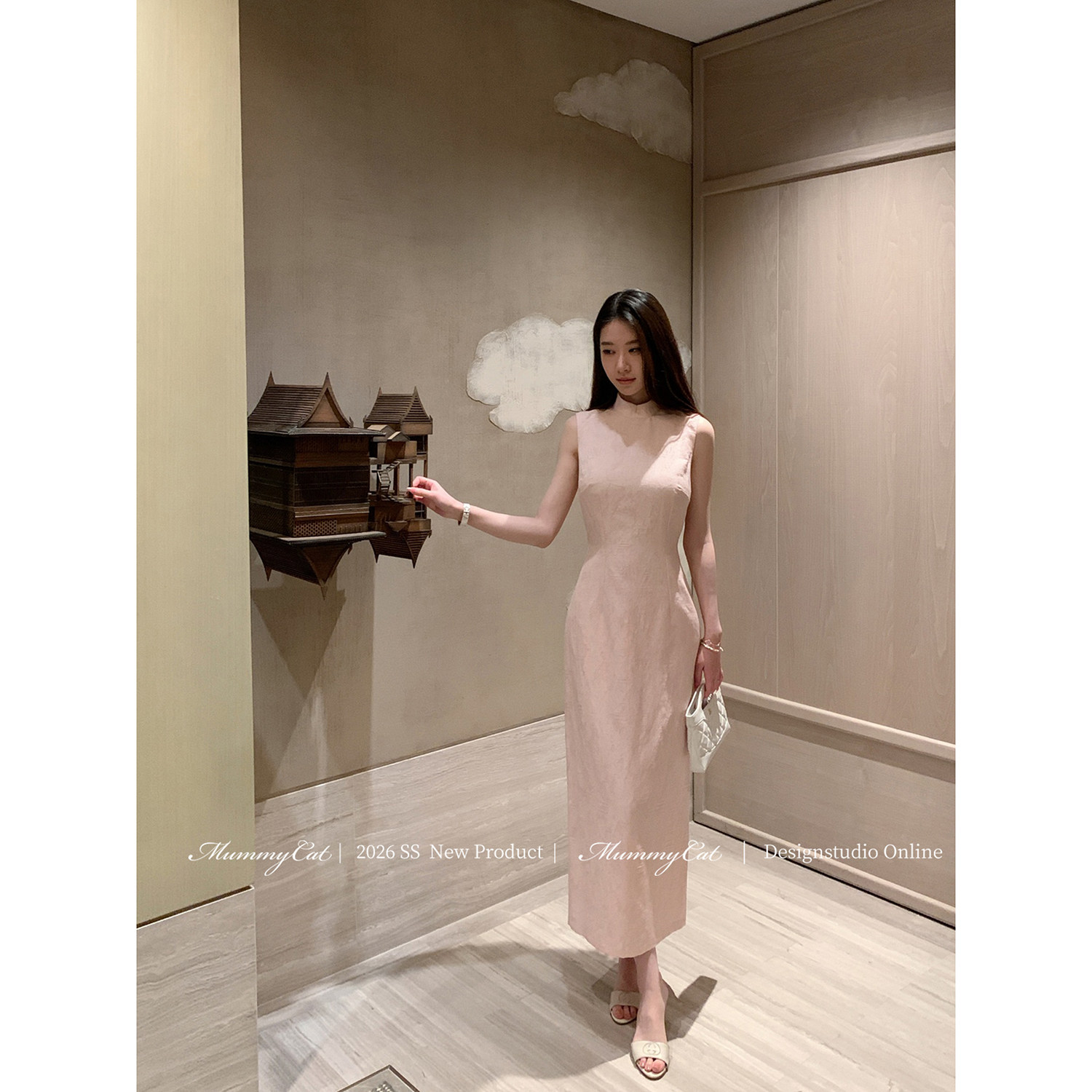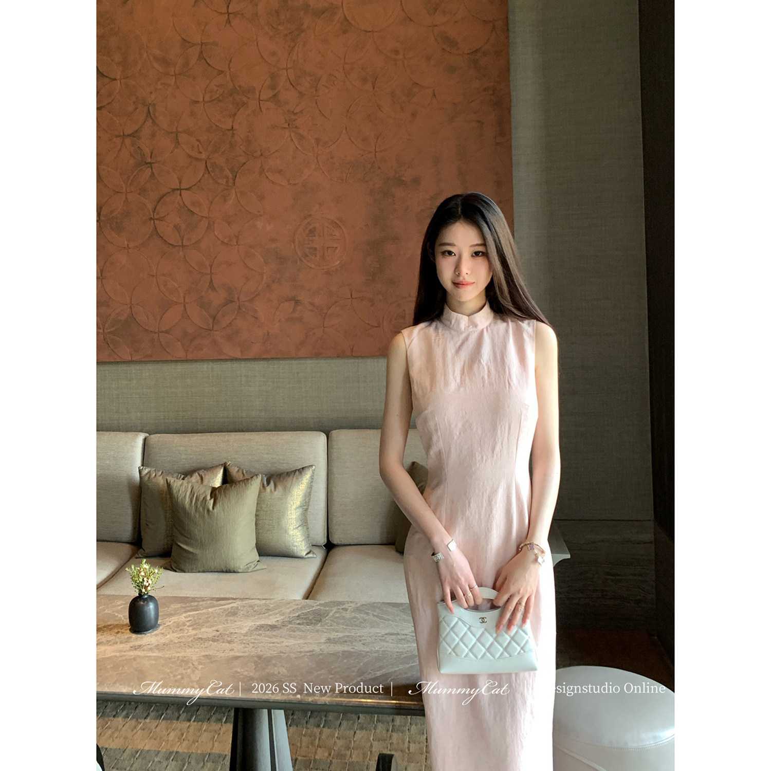 新品 Mummy Cat下蛋喵 粉黛云舒 改良旗袍亮丝提花连衣裙 新中式