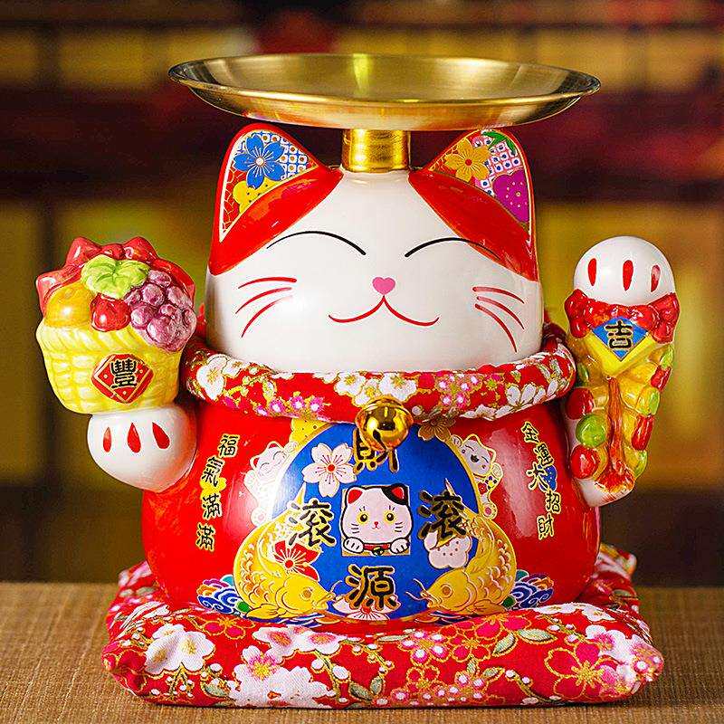 饰品搬家乔迁新居礼物 招财猫玄关钥匙收纳摆件入户家居客厅托盘装