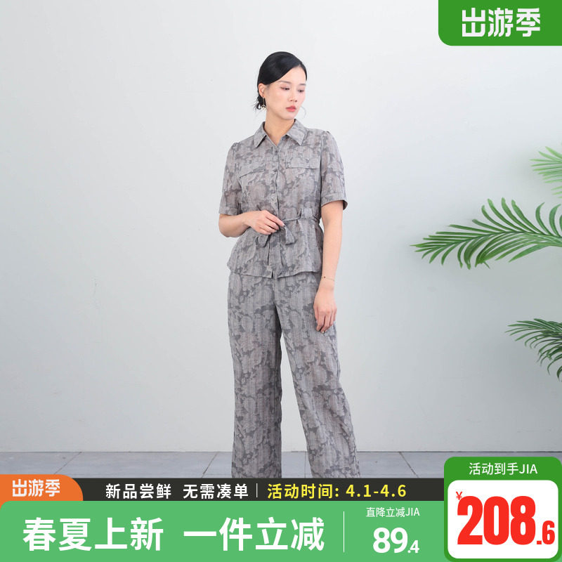 收腰显瘦洋气时髦套装 科尚妈妈装 两件套女夏季 阔腿裤 翻领短袖 衬衫由
