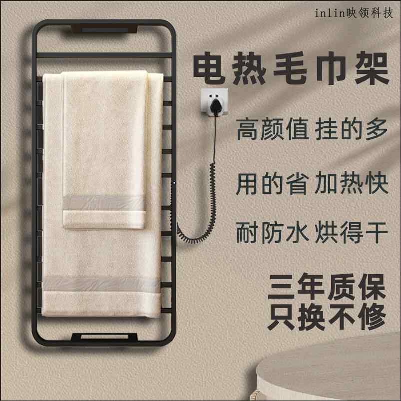 不锈钢电热架毛巾架家用ZWB卫浴室生黑色智能免打孔浴巾毛间巾杆
