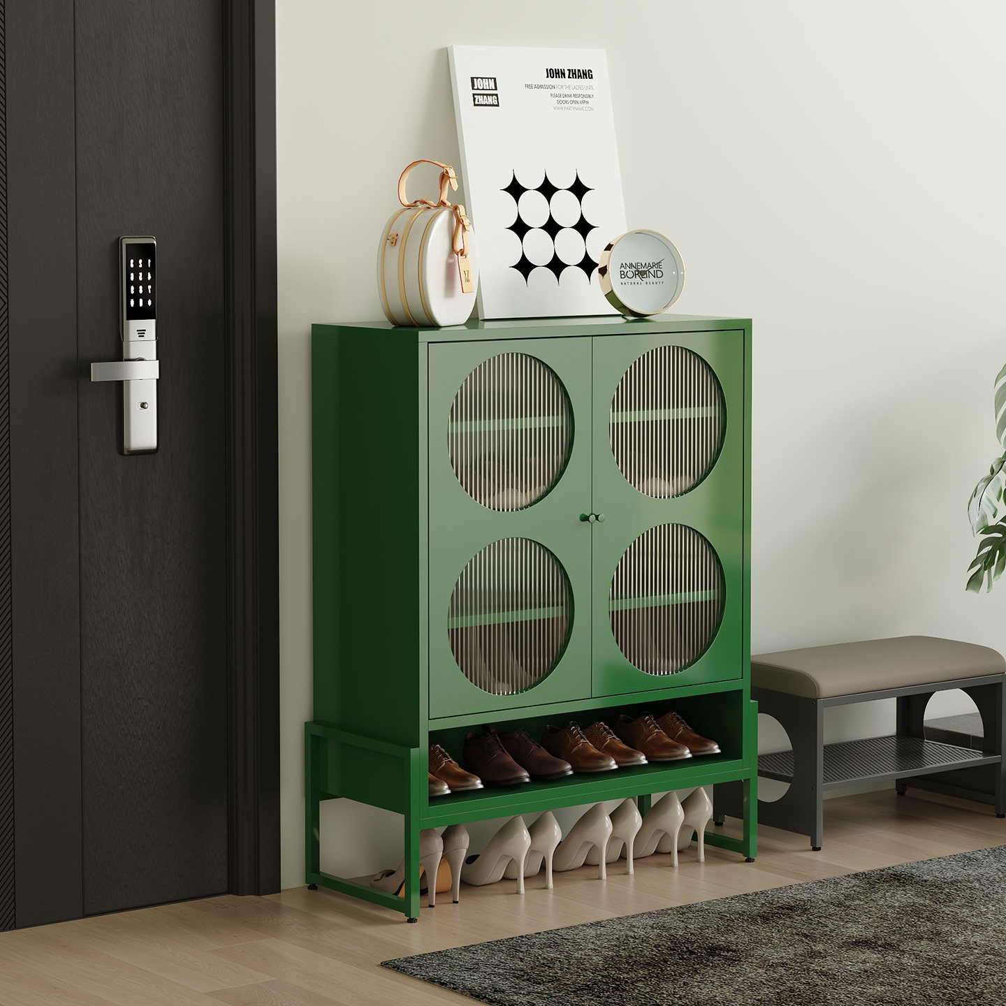 鞋 架一体靠墙楼道储物柜 柜家用门口中古风入户玄关柜多层大容量鞋由