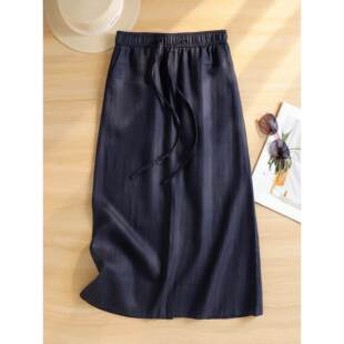 进口醋酸缎面丝滑垂坠显瘦松紧腰A字中长款 半身裙 memory commuse