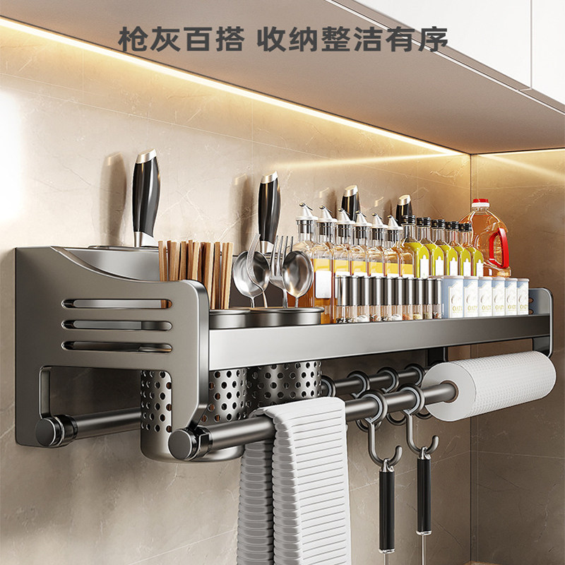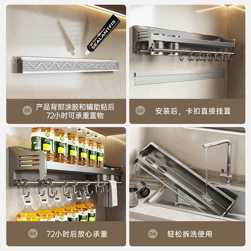 为您提供商品置物架筷筒刀架免打孔家用多功R能调味料收纳层 不锈钢厨房壁挂式的详细介绍,