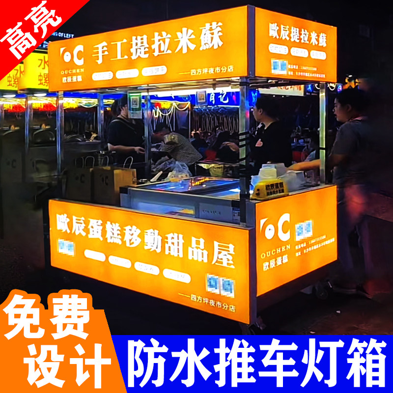 定制防水三轮车摆摊灯箱广告牌卡布软膜发光小吃推车烧烤夜市招牌