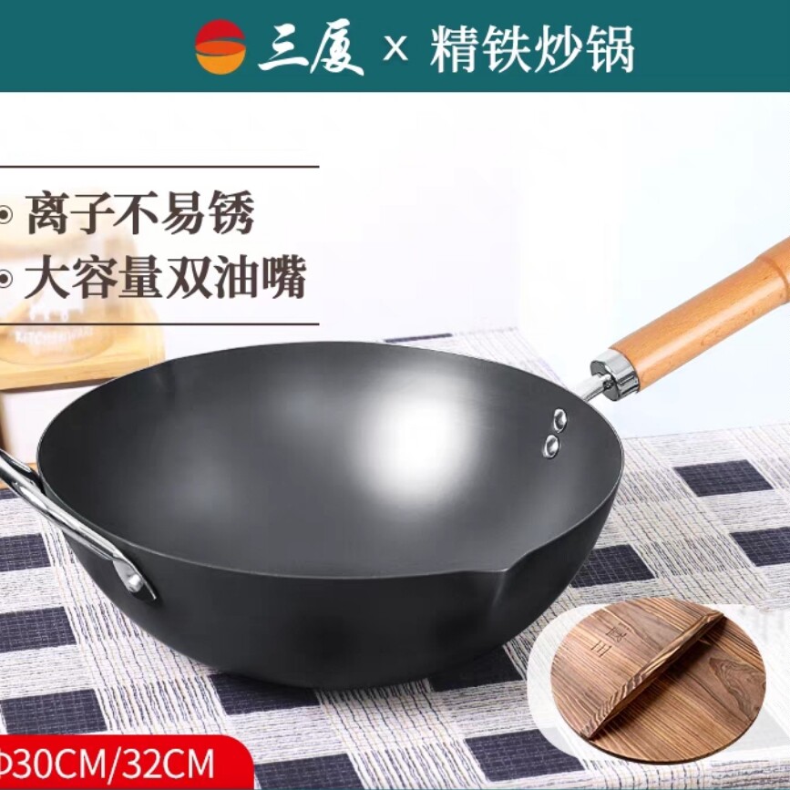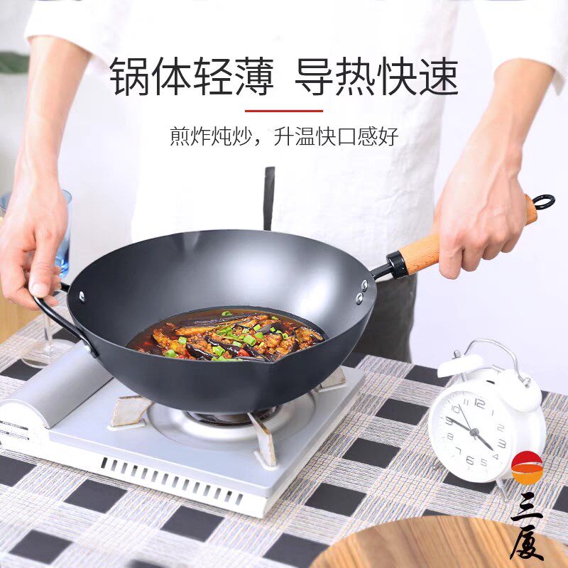 窒化铁锅家用炒菜锅中华极铁商用不锈平底锅电磁炉明火 三厦老式