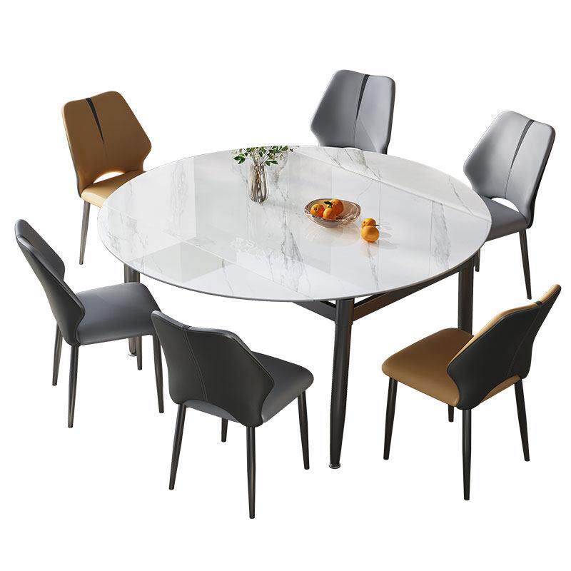 全友家居北欧岩板餐桌可变圆桌客厅家用小户型可伸缩折叠餐桌椅