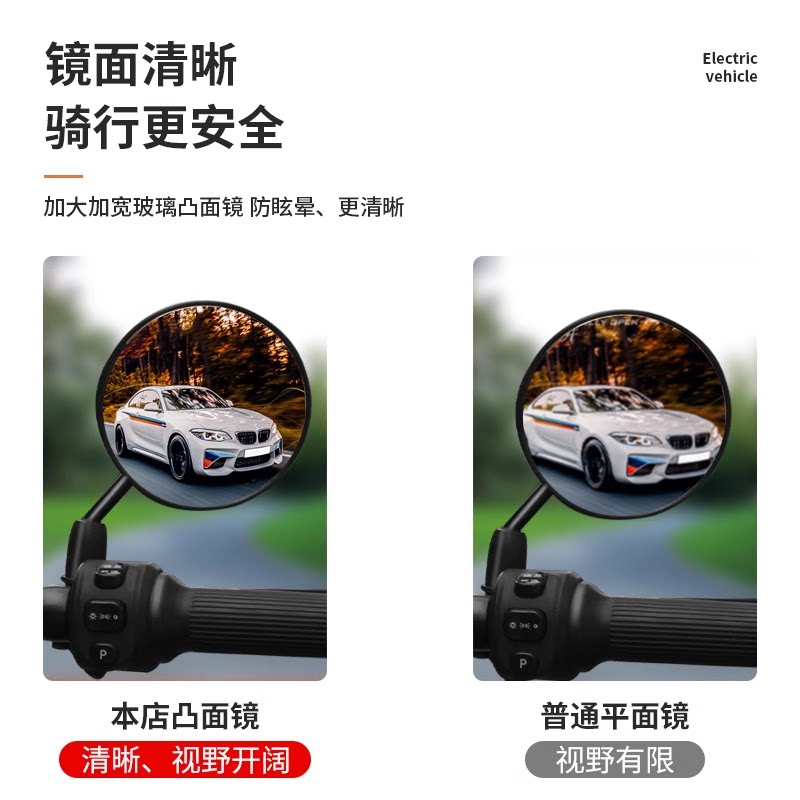 电瓶车装 饰倒后镜 G后视镜电动车反光镜小圆镜通用款 适用雅迪B10