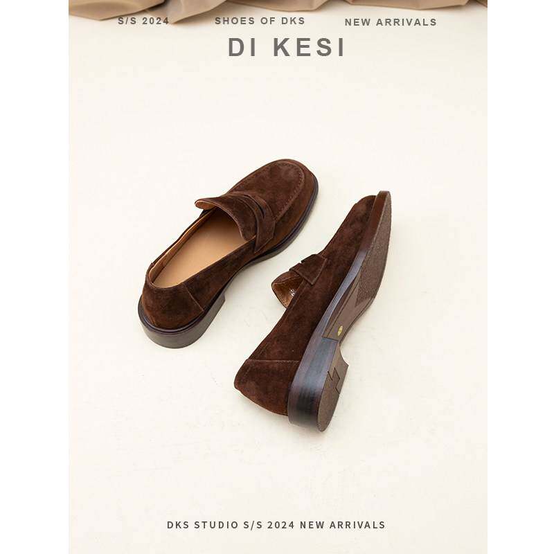 羊反绒春夏复古单鞋 周末 随性风 真皮手工小皮鞋 套脚英伦乐福鞋