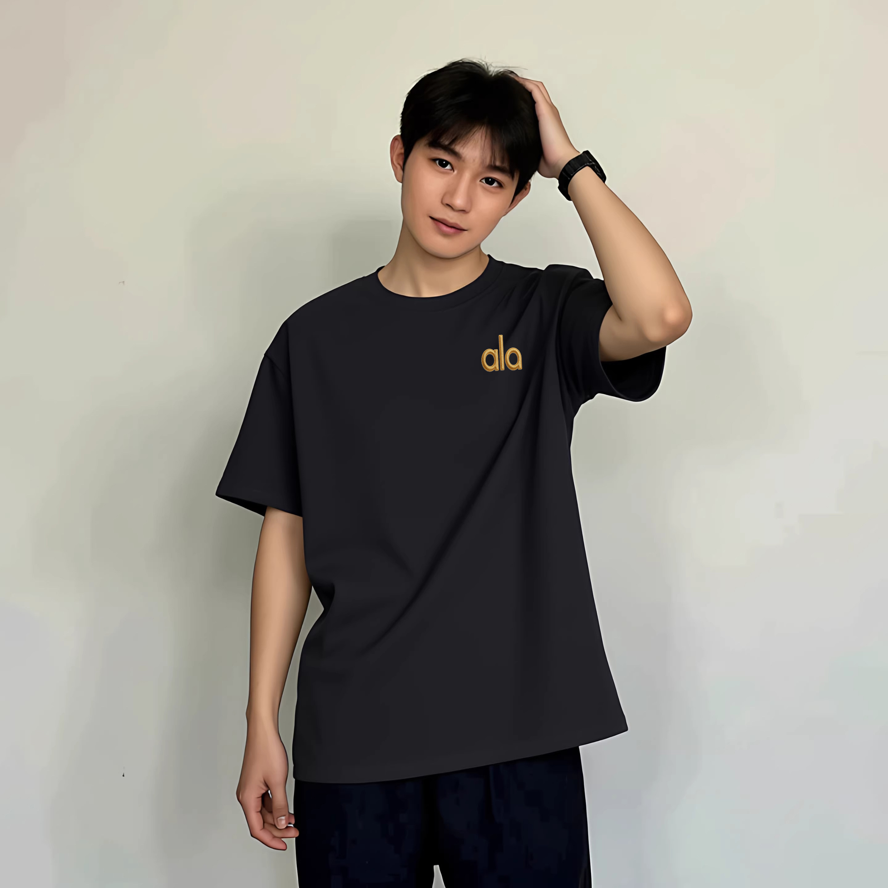 休闲潮流吸汗圆领男女通用 100%纯棉刺绣T恤透气情侣宽松休闲短袖由