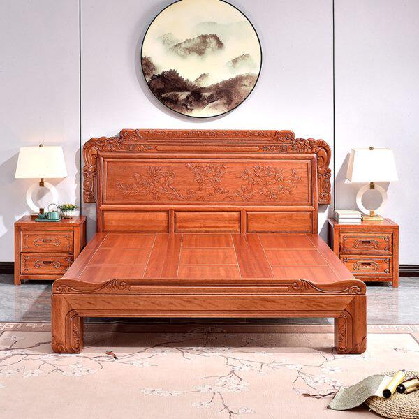 为您提供商品现代金木古典红木大床1.8m梨花雕花卧室家具双人 实木床仿古新中式的详细介绍,