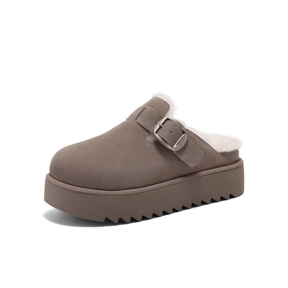 加绒保暖包头棉鞋 D1P1DAH5 女鞋 周雨彤百丽厚切吐司勃肯拖鞋