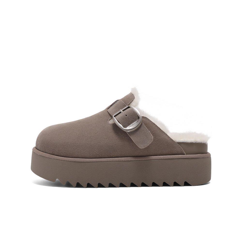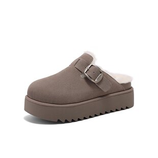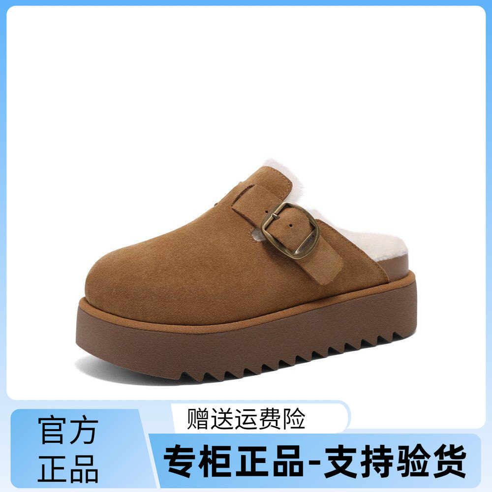 加绒保暖包头棉鞋 D1P1DAH5 女鞋 周雨彤百丽厚切吐司勃肯拖鞋由