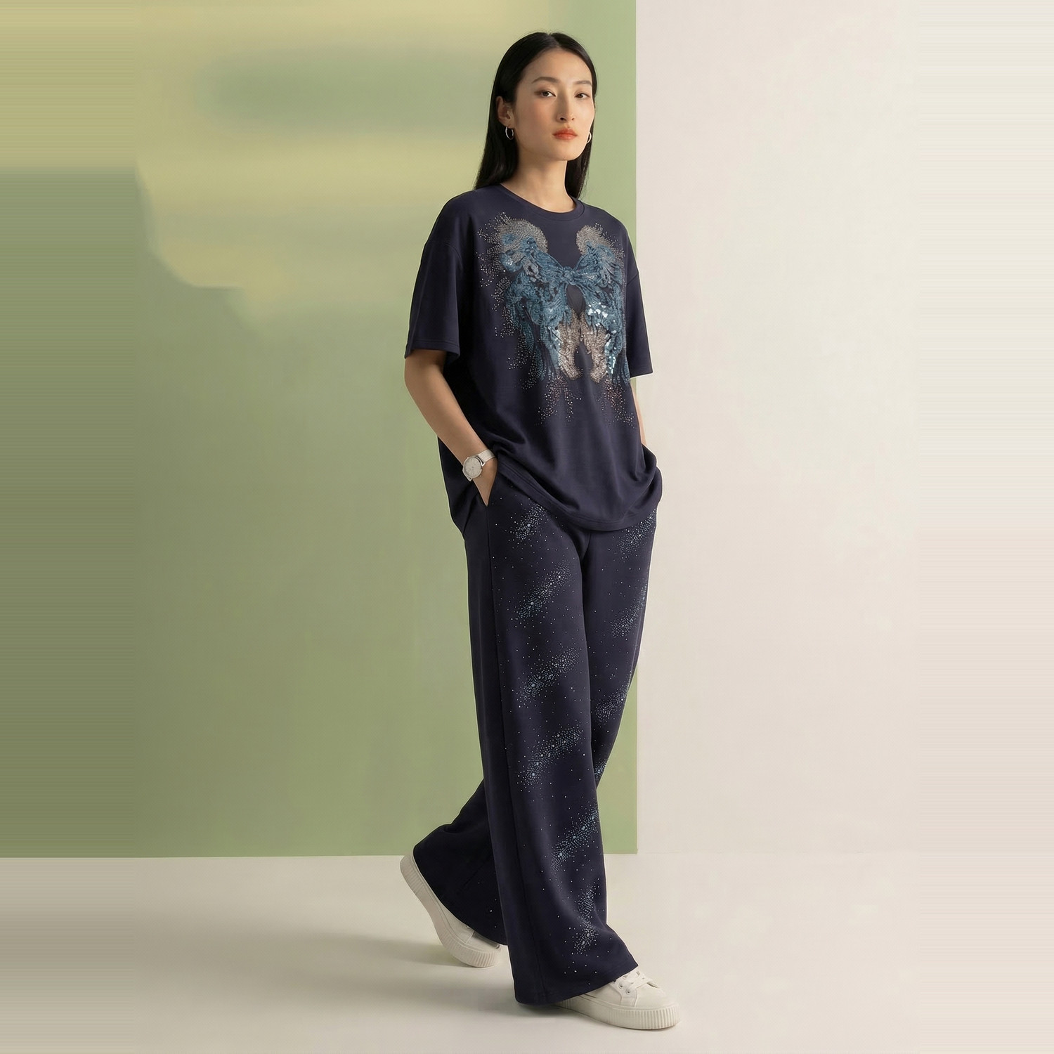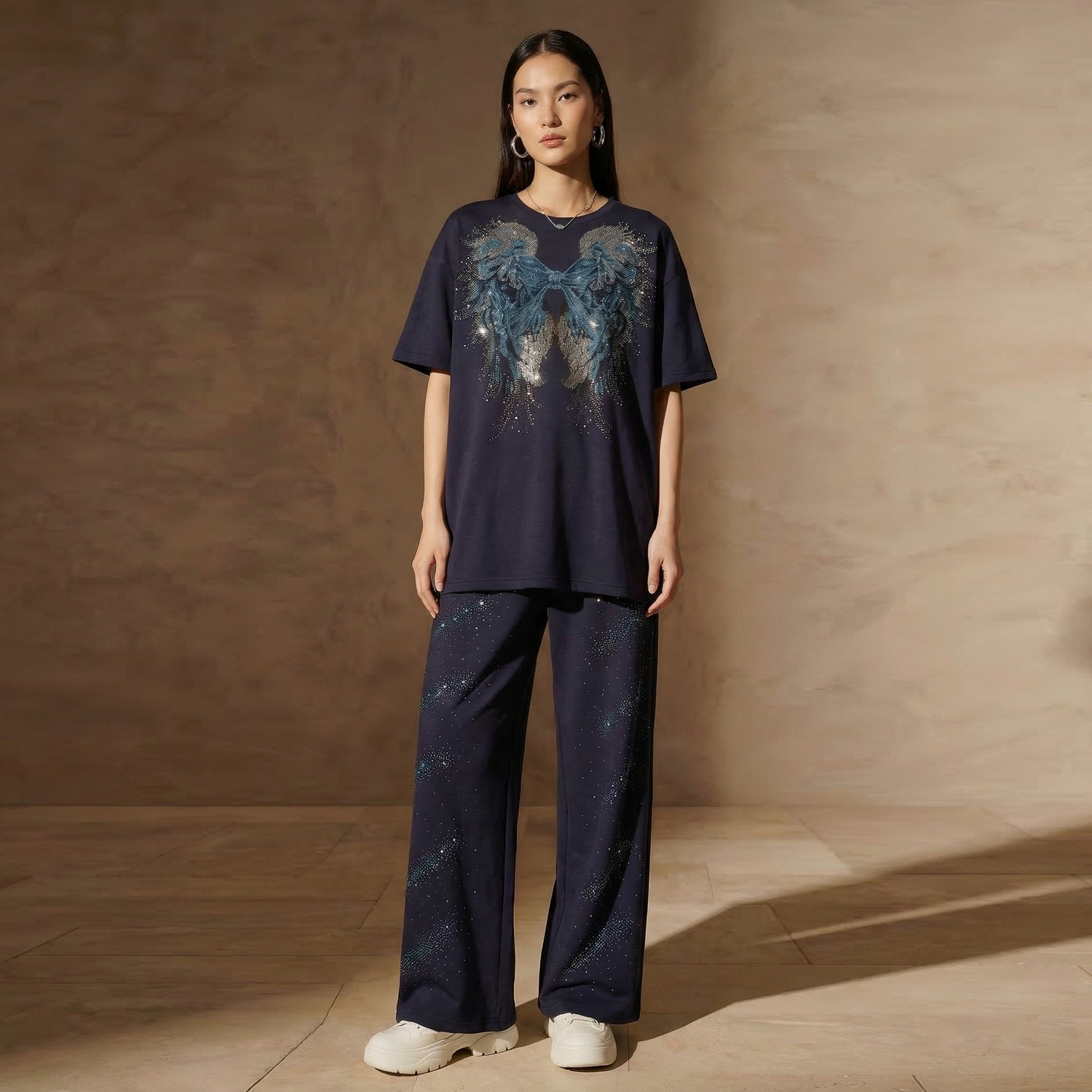 ⭐小红书推荐⭐T78A07E1171 TCH藏青色翅膀烫钻短袖 休闲套装 2026夏新款 T恤阔腿裤,所属时尚套装分类,由淘宝网挑选推荐!小红书抖音网红同款!哪里有卖T78A07E1171 TCH藏青色翅膀烫钻短袖 休闲套装 2026夏新款 T恤阔腿裤和多少钱质量怎么样✅。