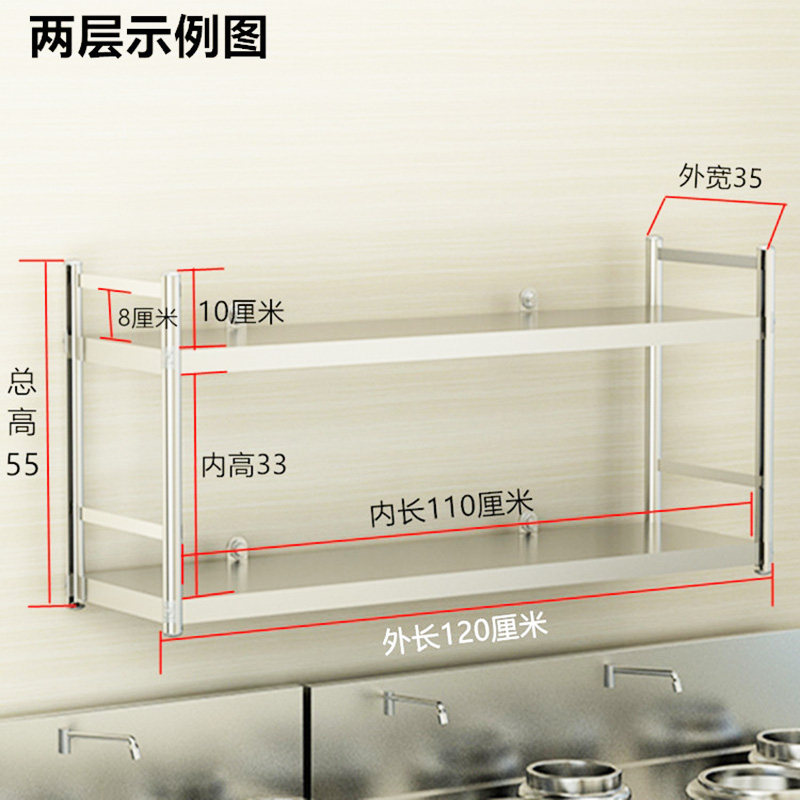 厨房不锈钢墙壁货架微波炉层架二层上墙置物架家用饭店吊架壁挂架