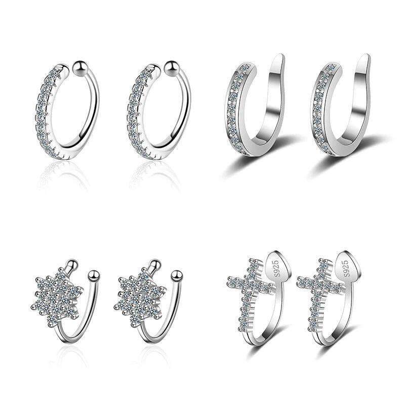 925 Simple Silver Clip Zircon Crystal Cuff Earring Ear