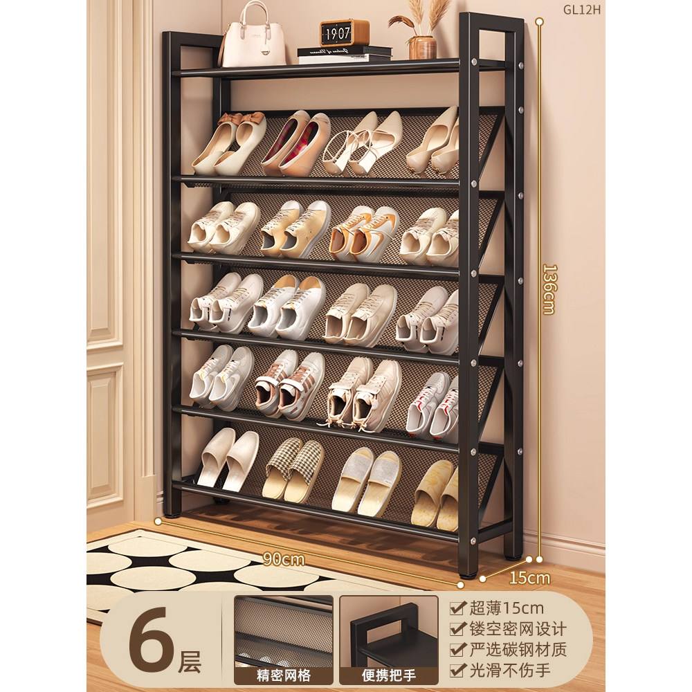 碳钢鞋 柜 架落地多层家用门口简易收纳架子超薄15cm斜放小型置物鞋