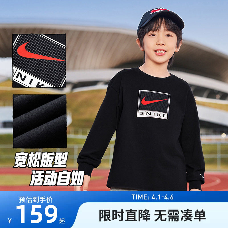 儿童长袖 T恤男女童内搭2026新休闲上衣N32612177 3brand童装 Nike