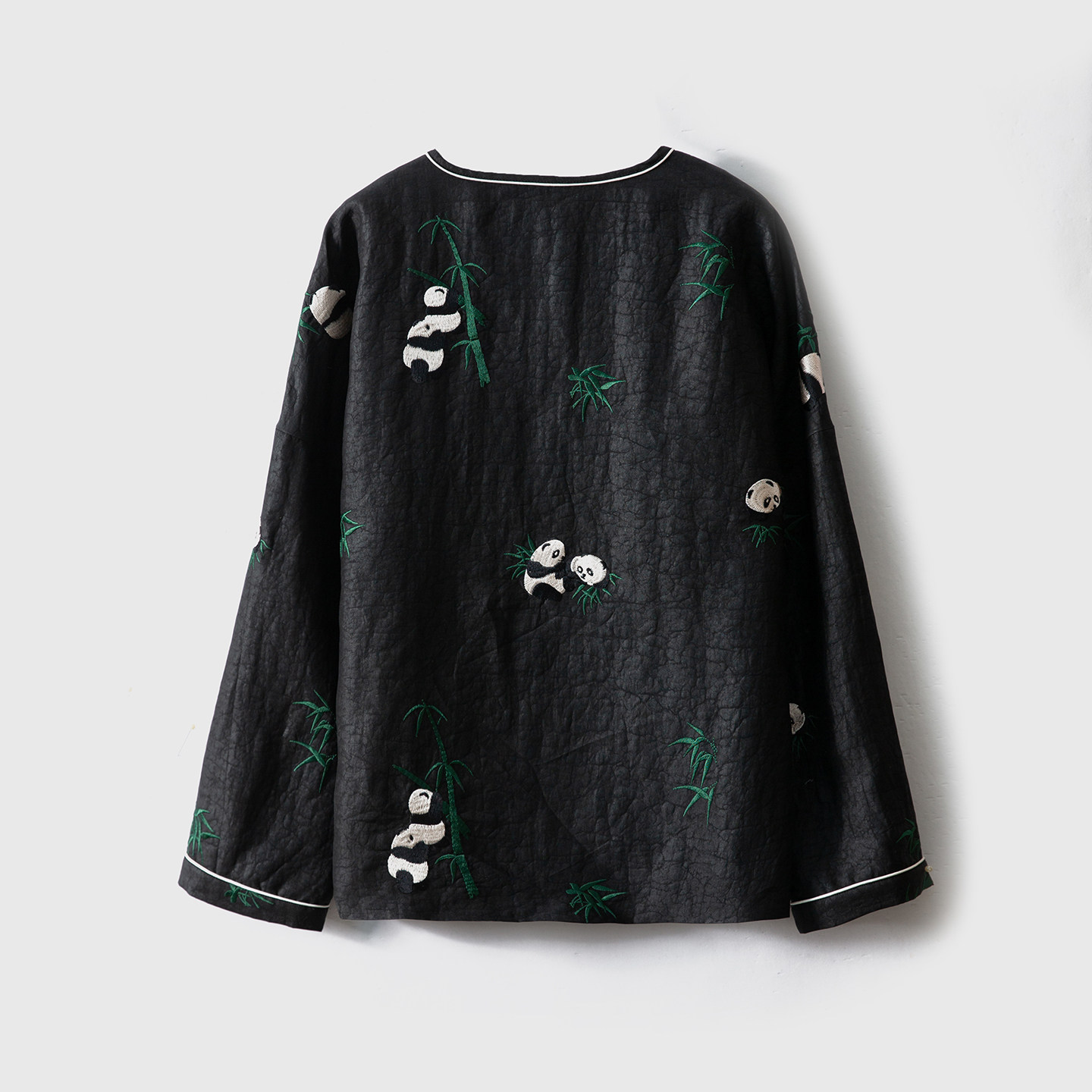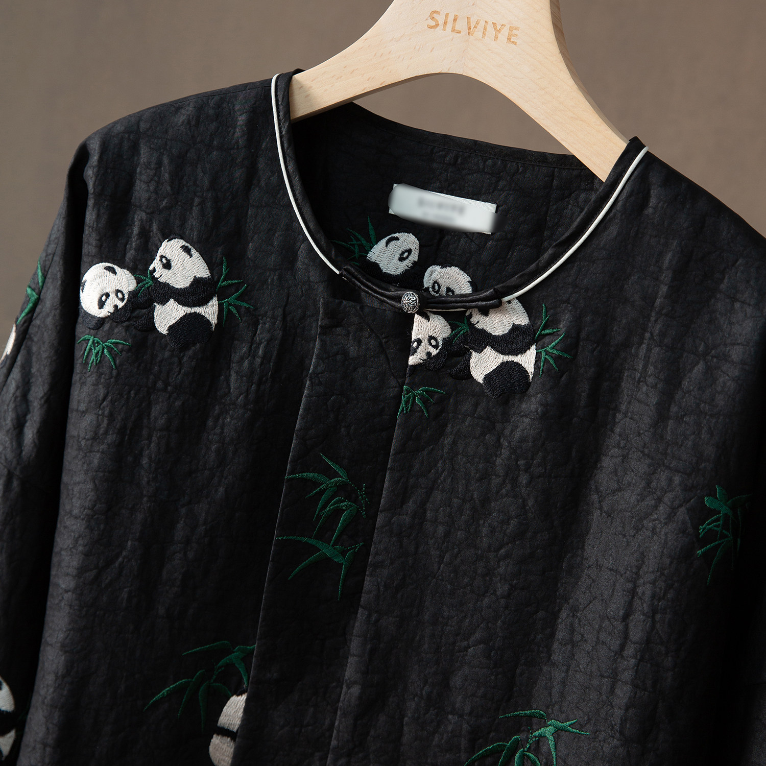 圆领开衫 外套 100%桑蚕丝国风熊猫刺绣香云纱龟纹真丝新中式 高定
