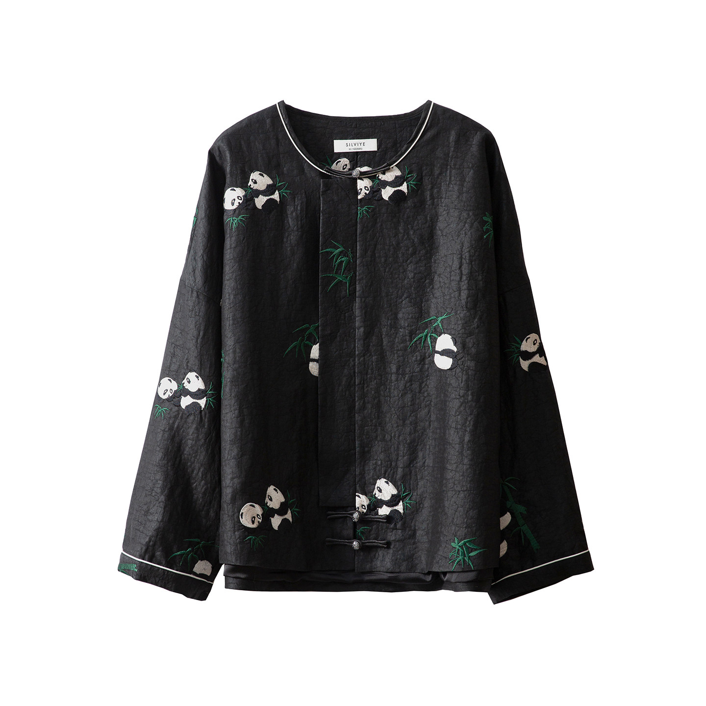 圆领开衫 外套 100%桑蚕丝国风熊猫刺绣香云纱龟纹真丝新中式 高定由