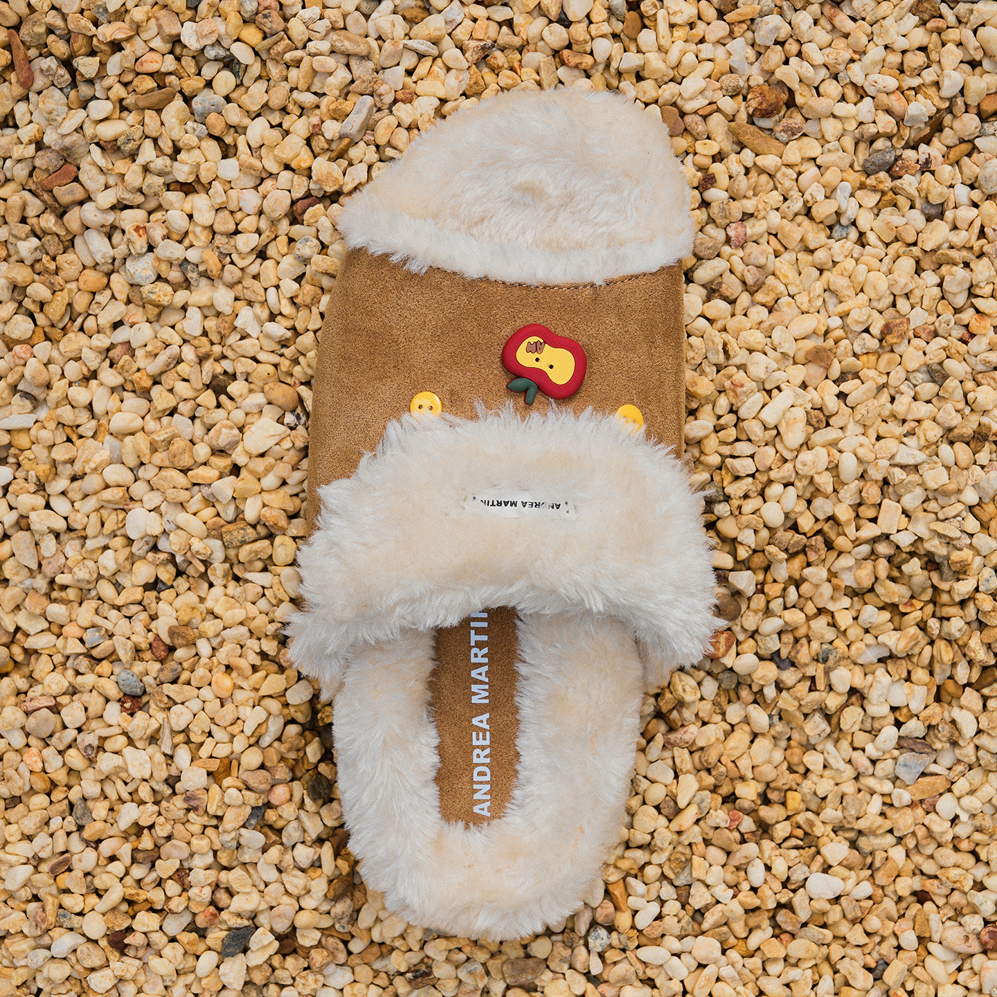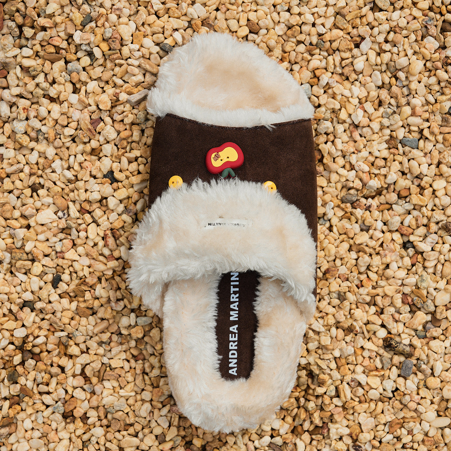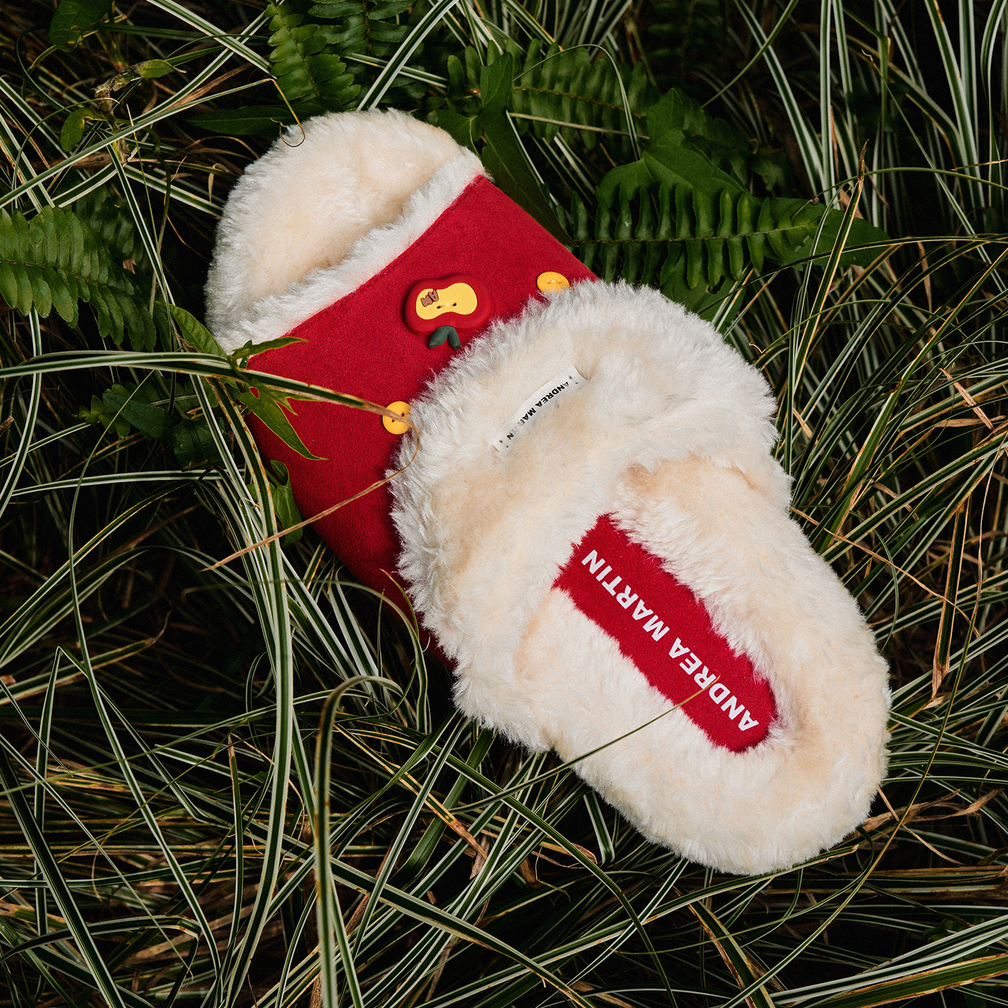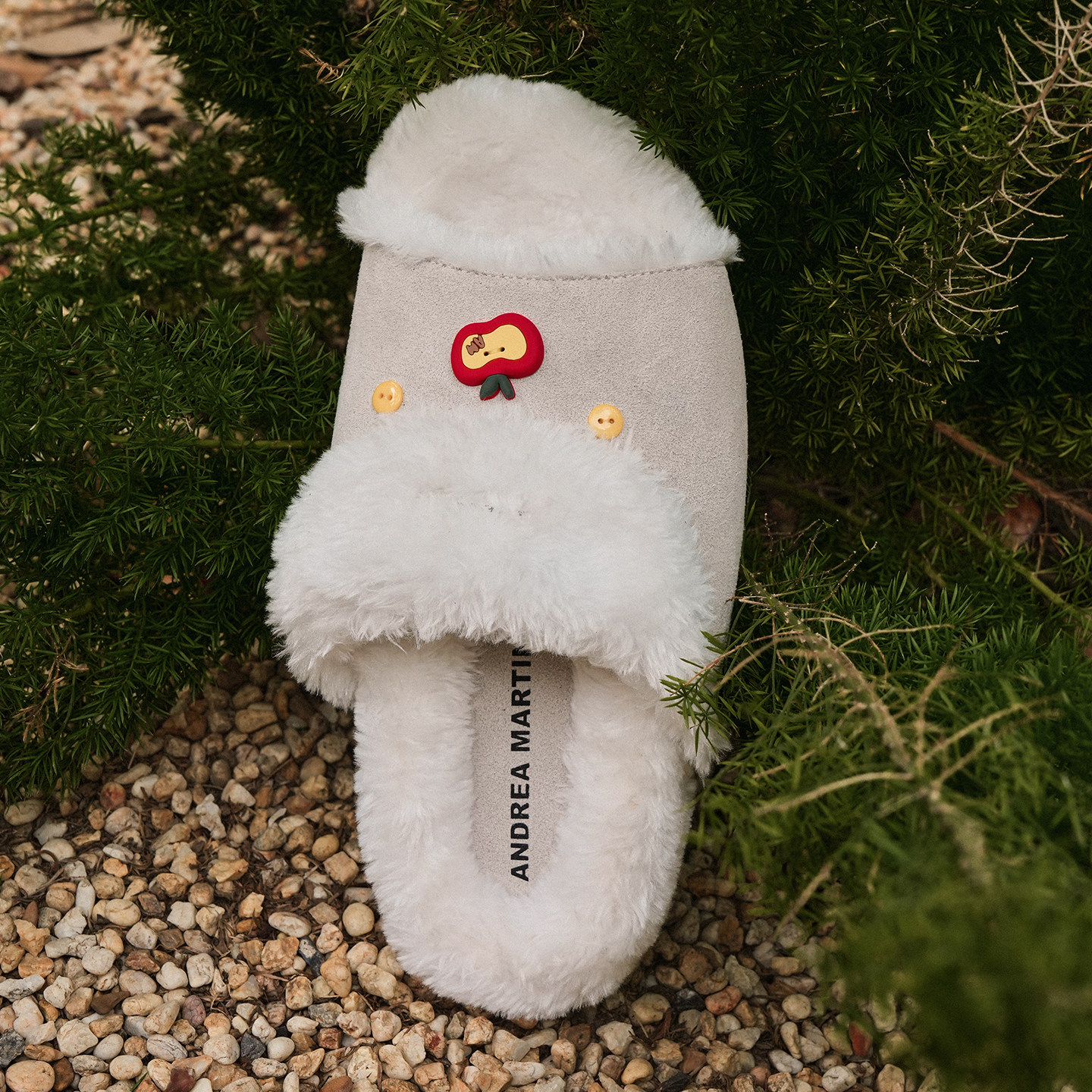 新款 ANDREA MARTIN 2026春季 居家可爱加绒保暖休闲女一字棉毛拖鞋