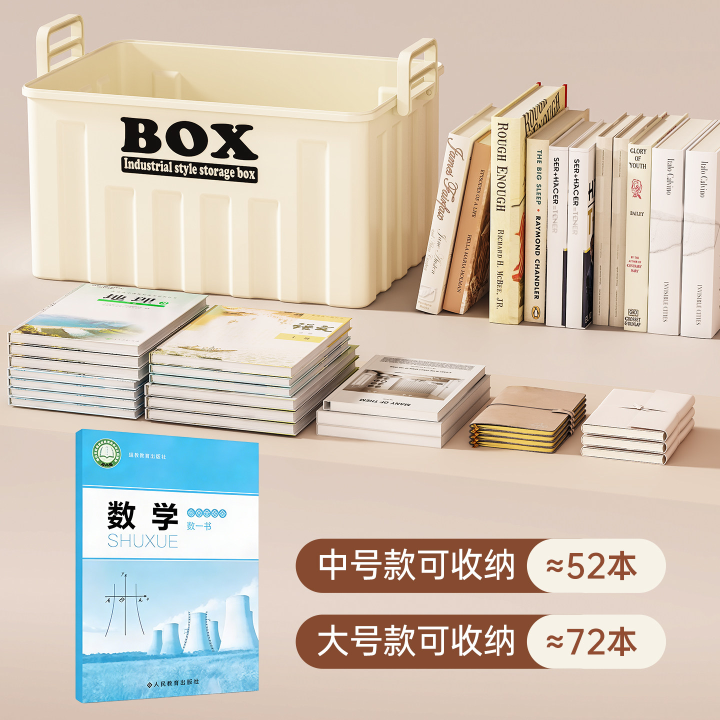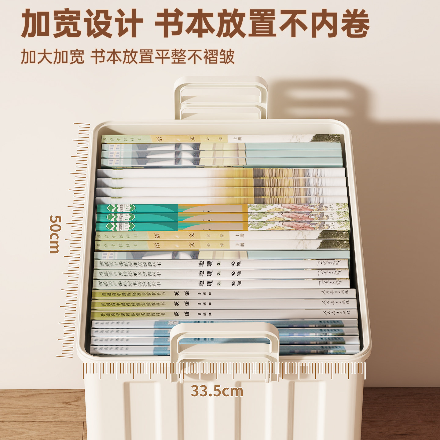 书本收纳箱书箱带轮可移动桌下学生教室书本收纳高中生书籍盒神器由