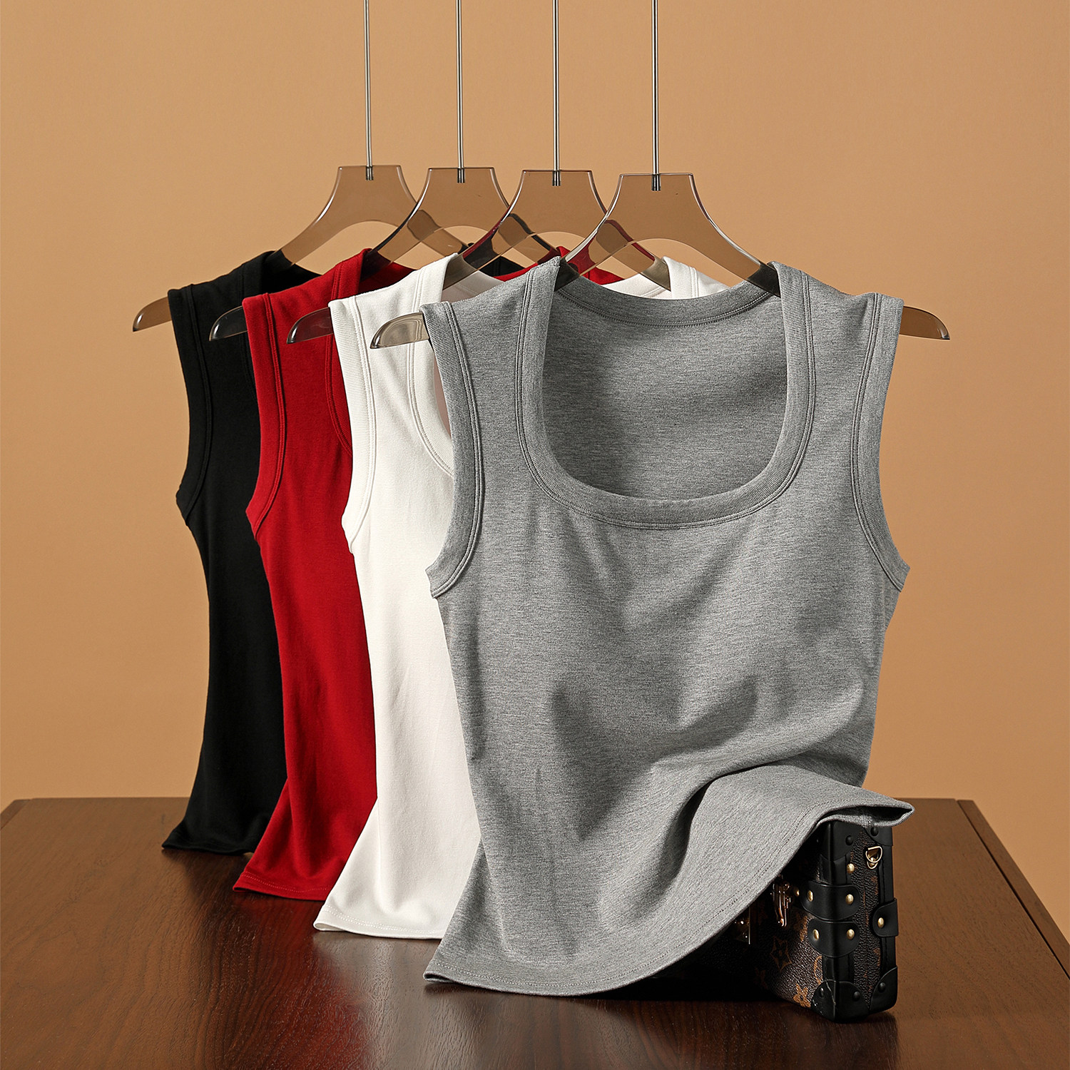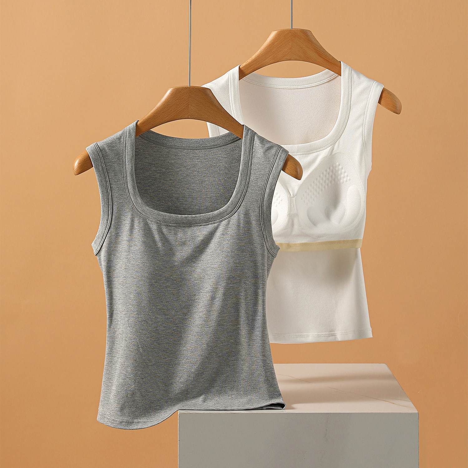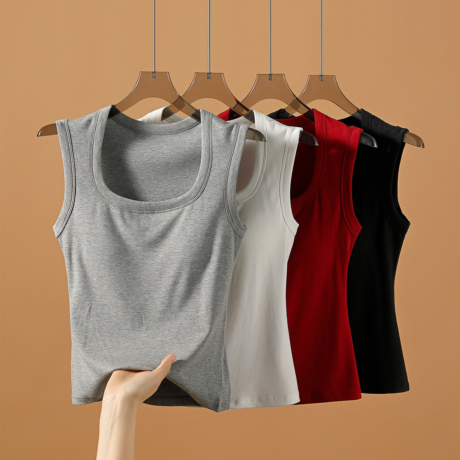 基础Bi备带胸垫性感U领遮副乳吊带背心亲肤好穿内搭打底女 自留款