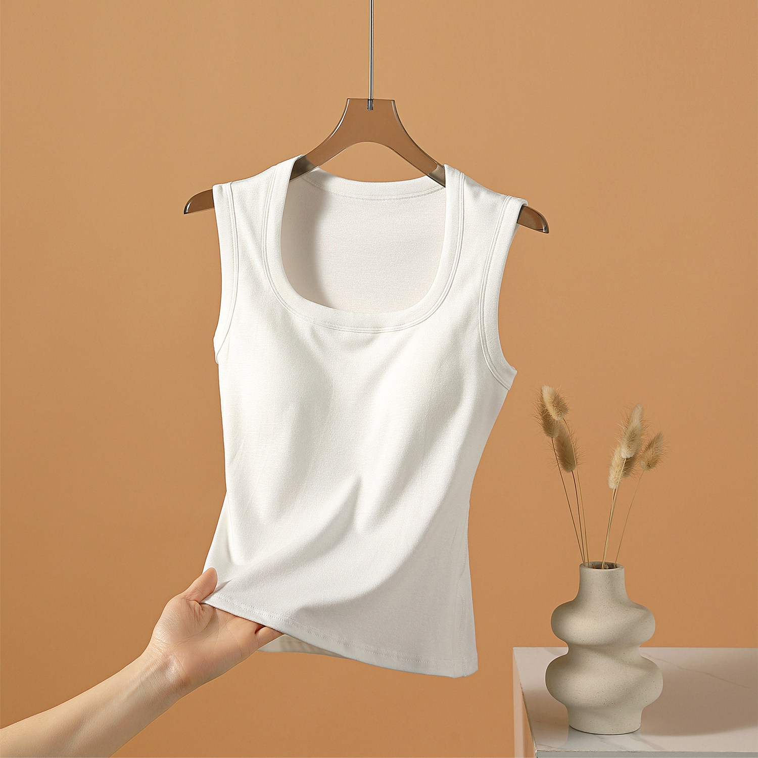 外穿内搭打底遮副乳无袖 百搭吊带 修身 螺纹方领吊带背心女白色大码