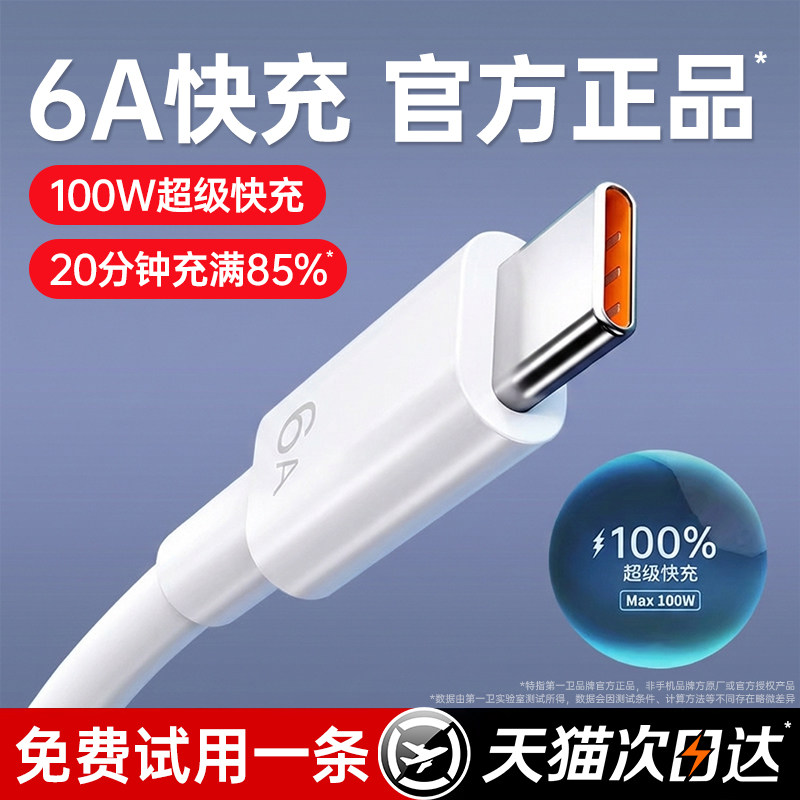 c数据线100W适用华为mate80荣耀tpyec充电线小米闪安卓手机原正品 6A超级快充 第一卫type usb充电器线70 装