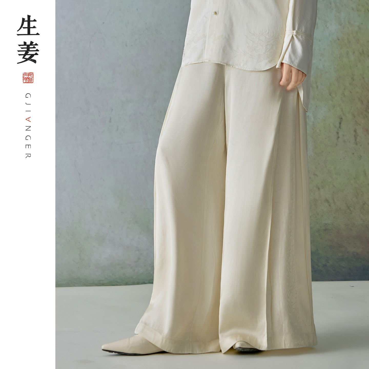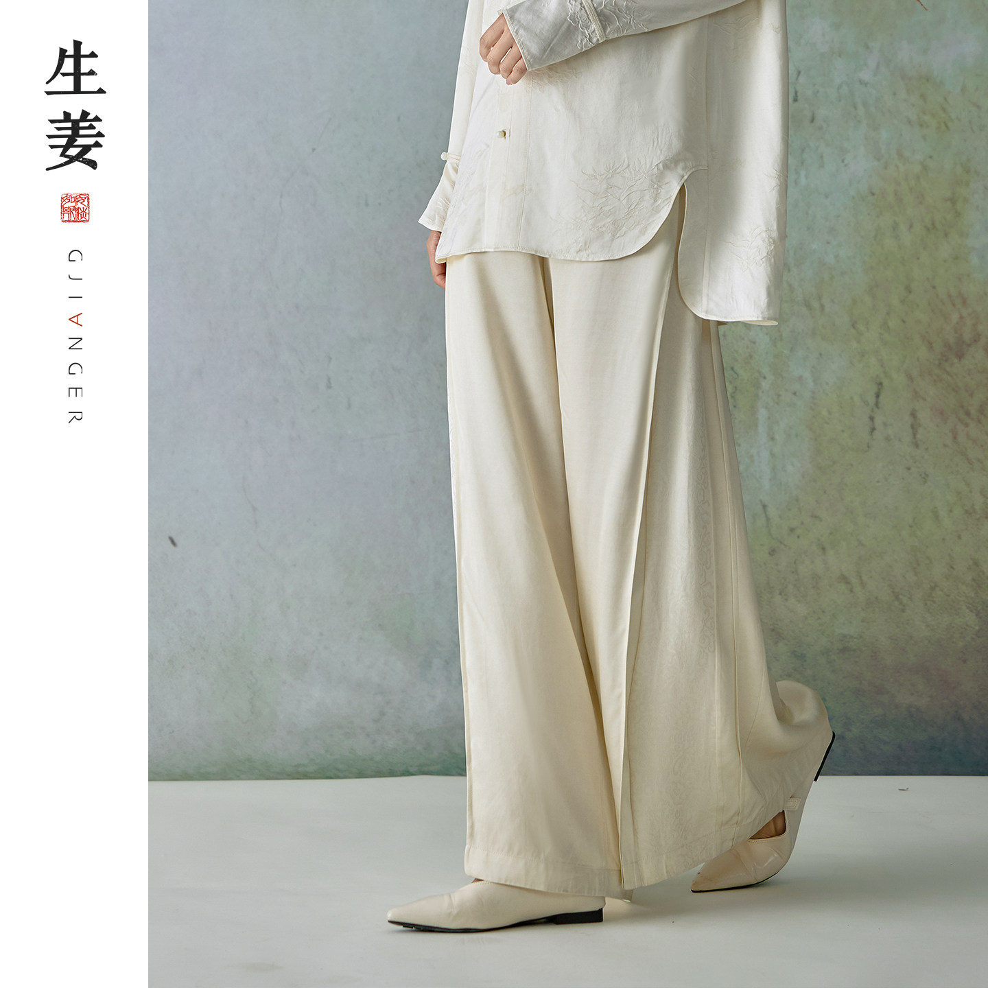 原创2026春新层次感插片设计简约阔腿裤 31618106A 侧岫新中式 生姜