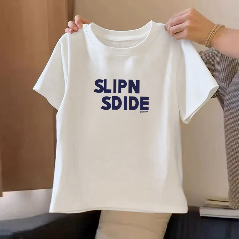 正肩短款 搭配阔腿裤 小个子T恤 韩版 新款 上衣女纯棉短袖 T恤2026夏季由